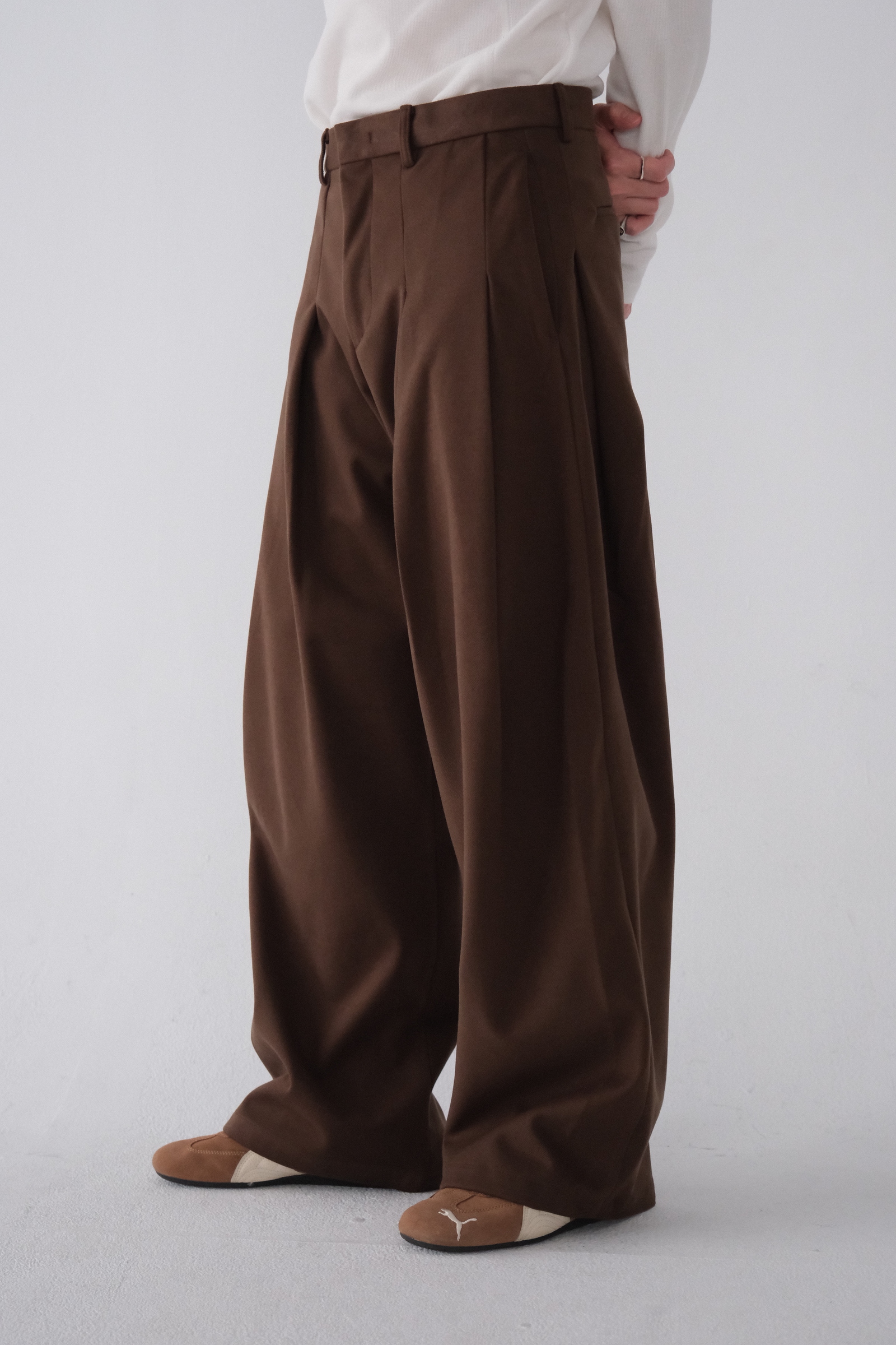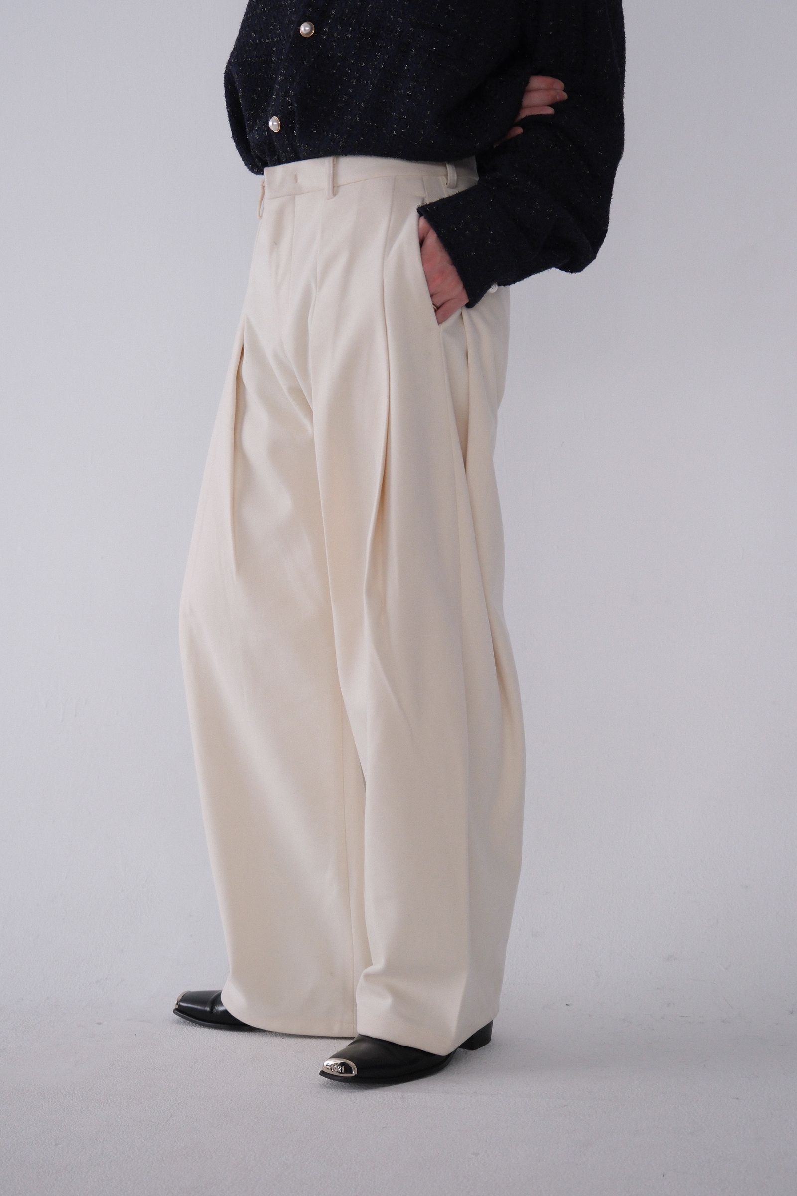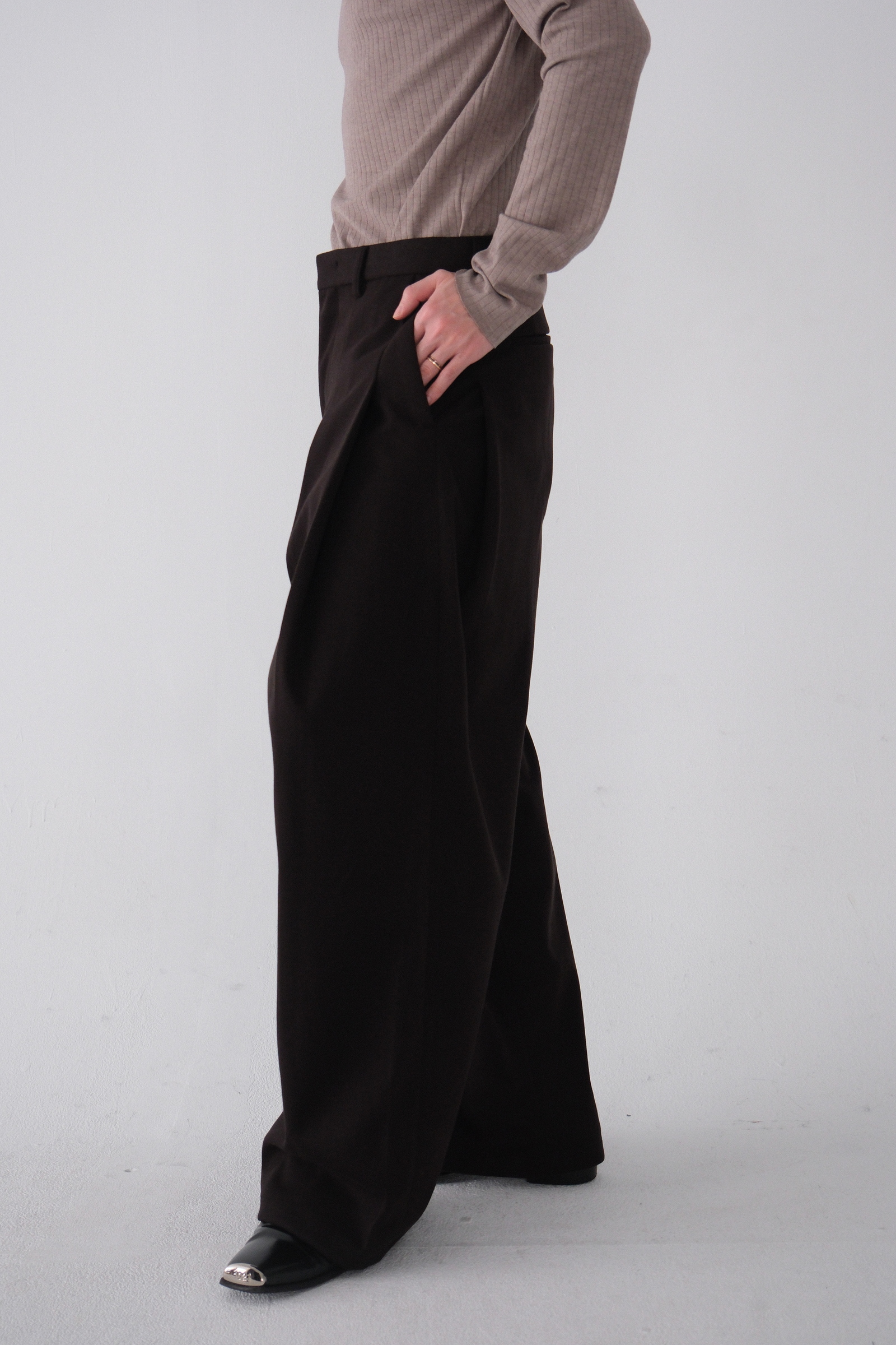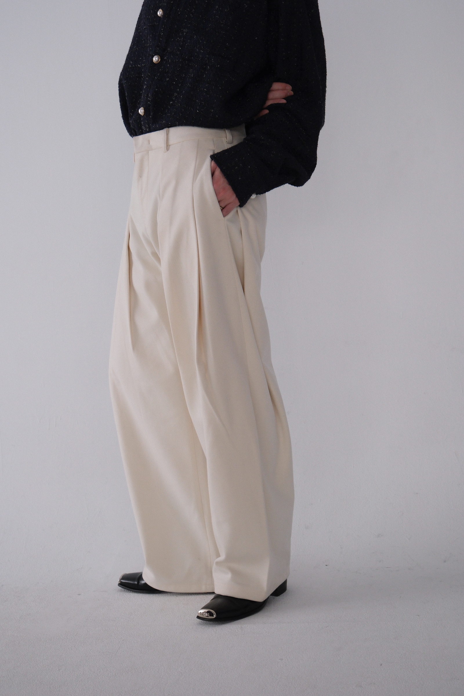 雖然是寬褲,不過穿上去腿縫還是會有,整體很修長
