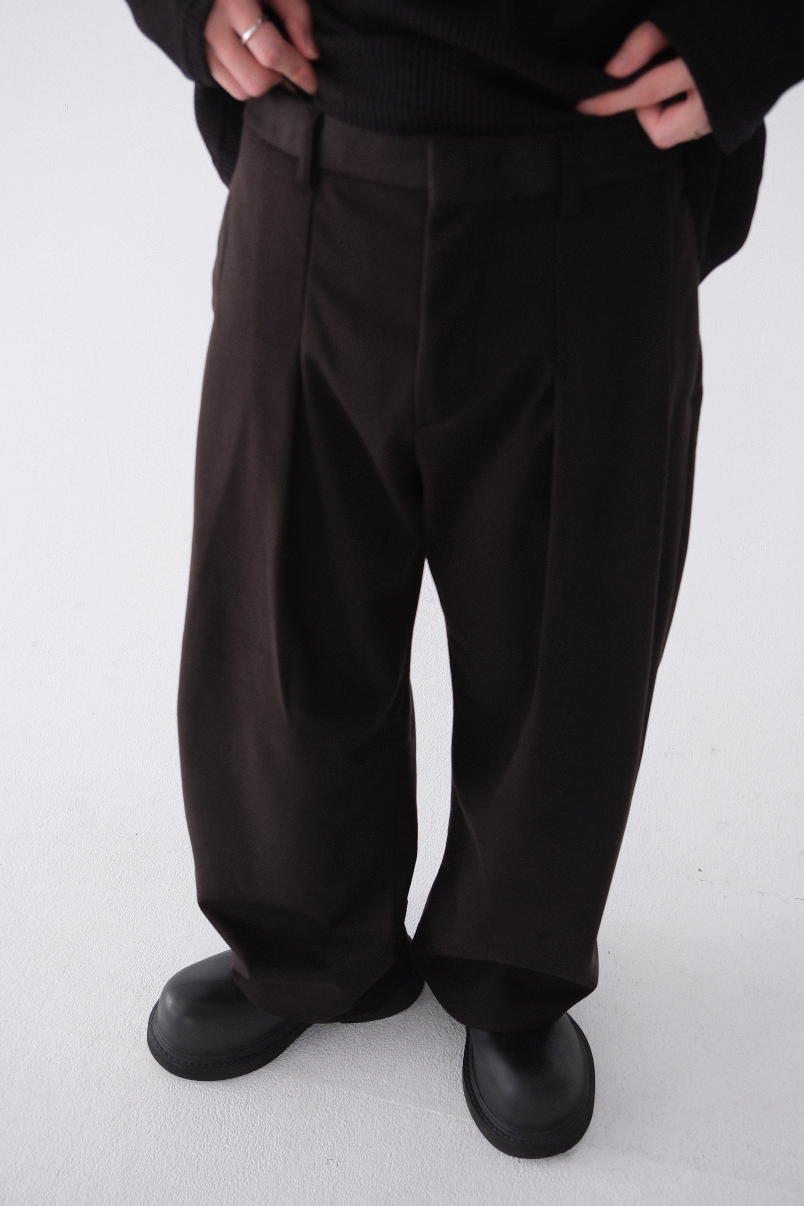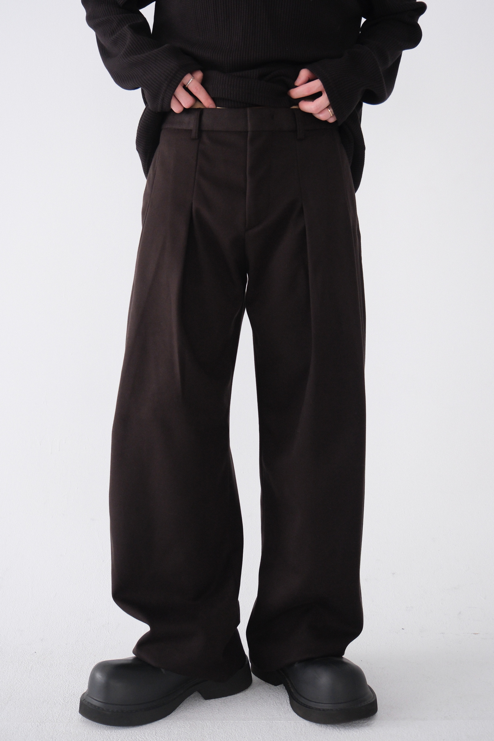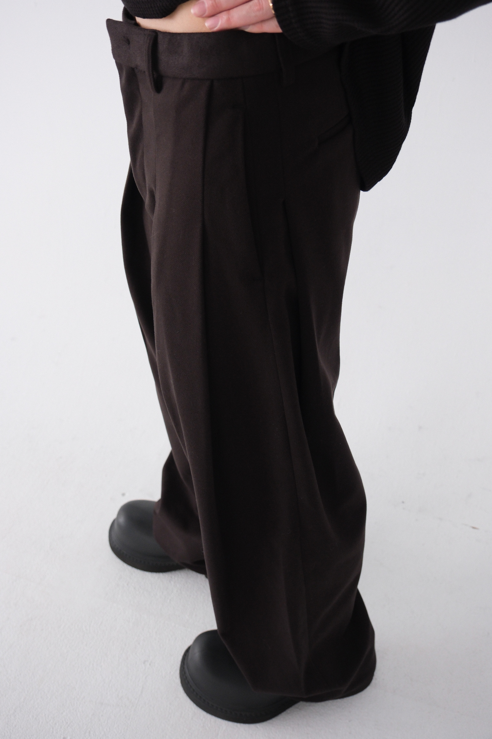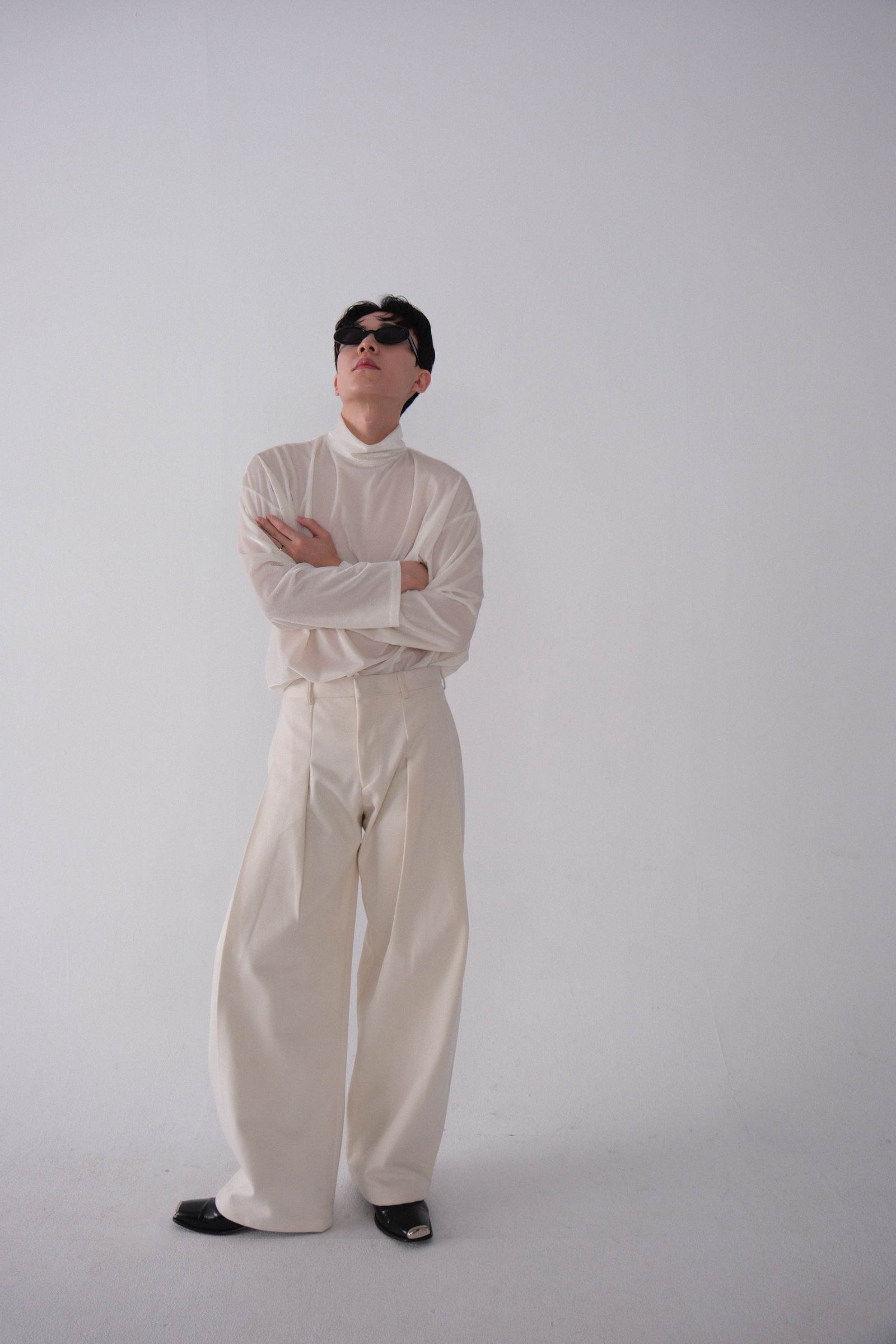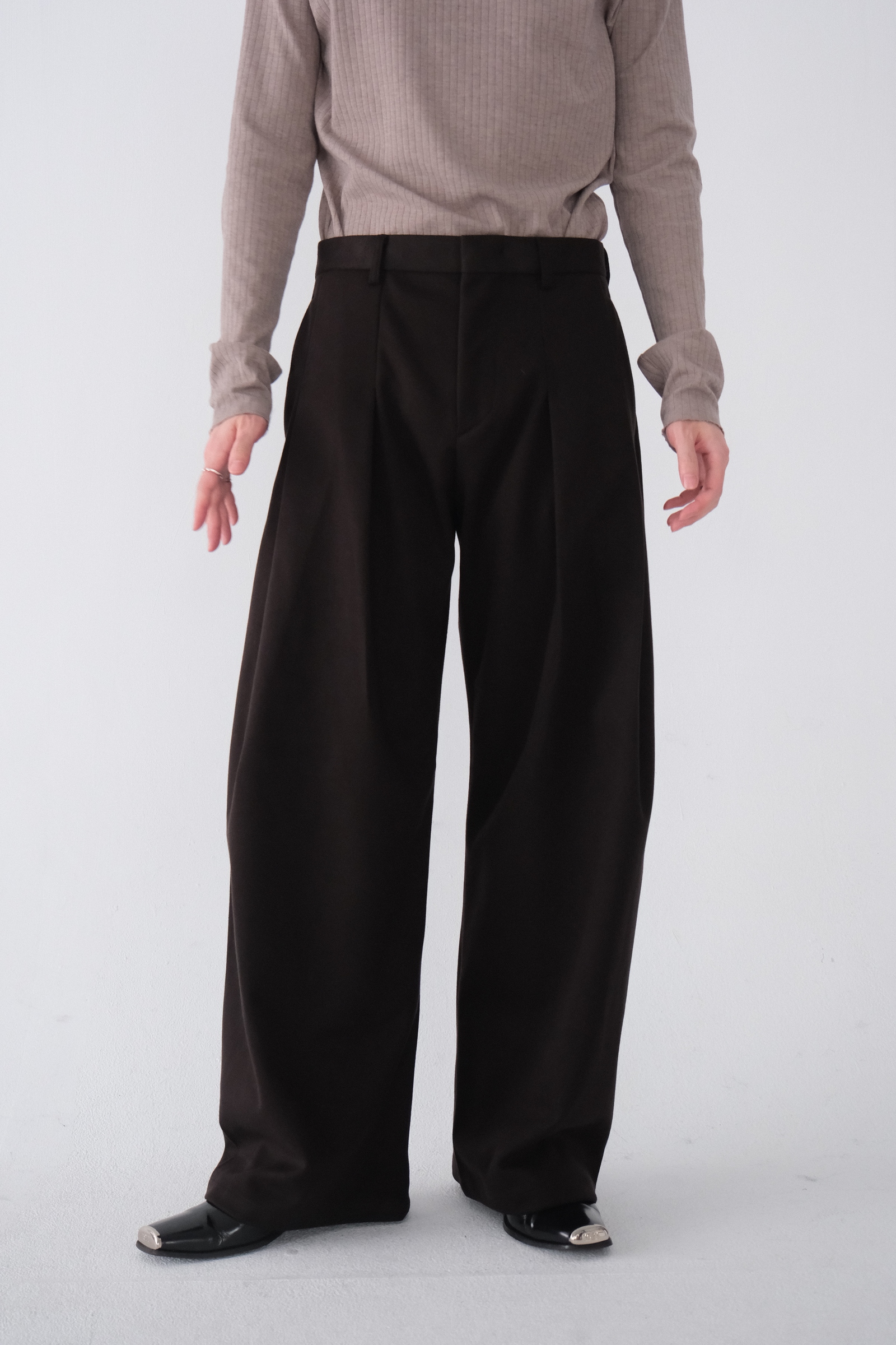 雖然是寬褲,不過穿上去腿縫還是會有,整體很修長