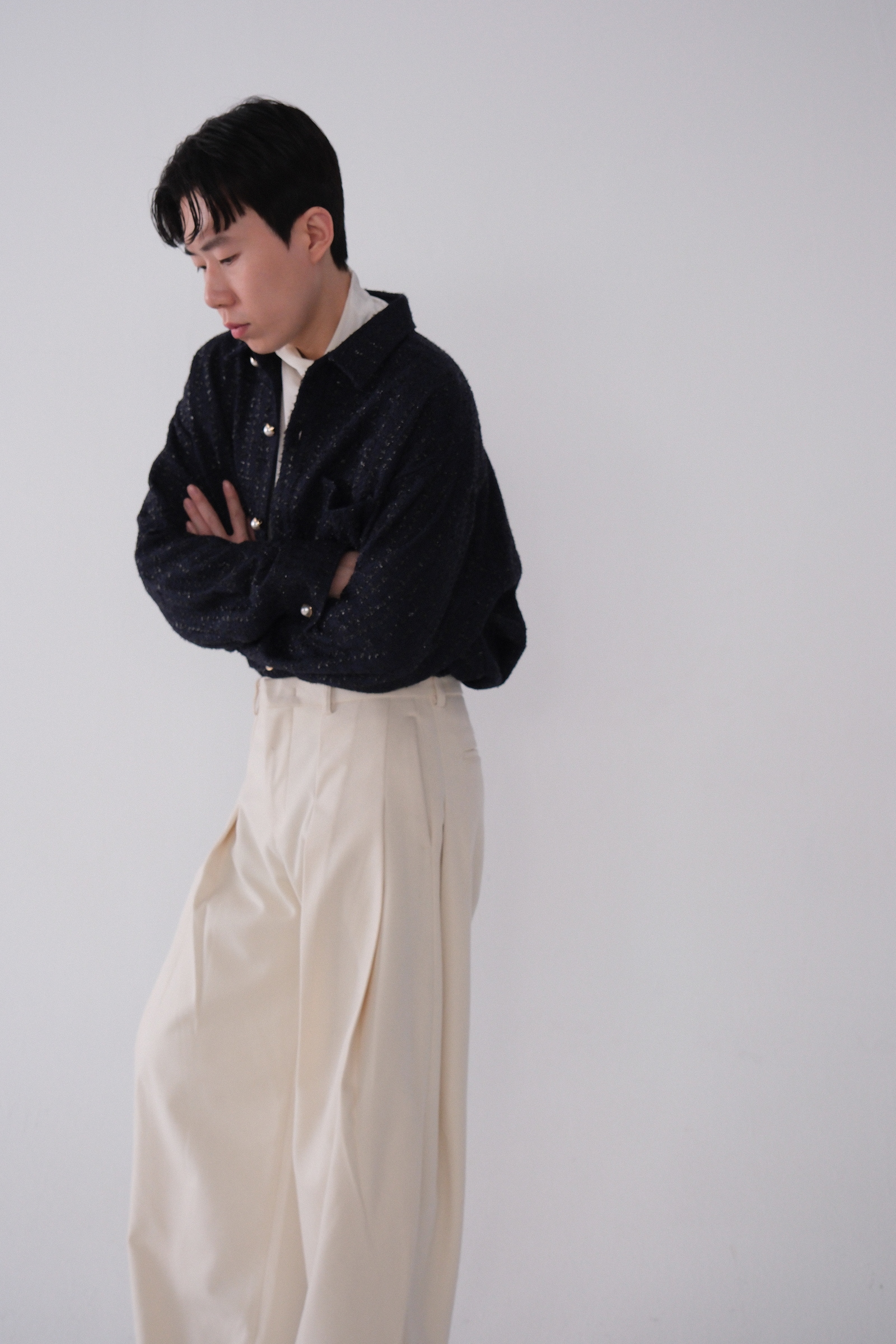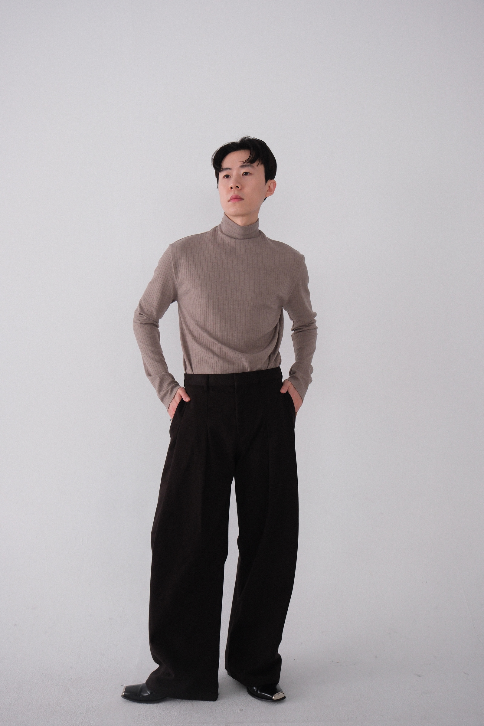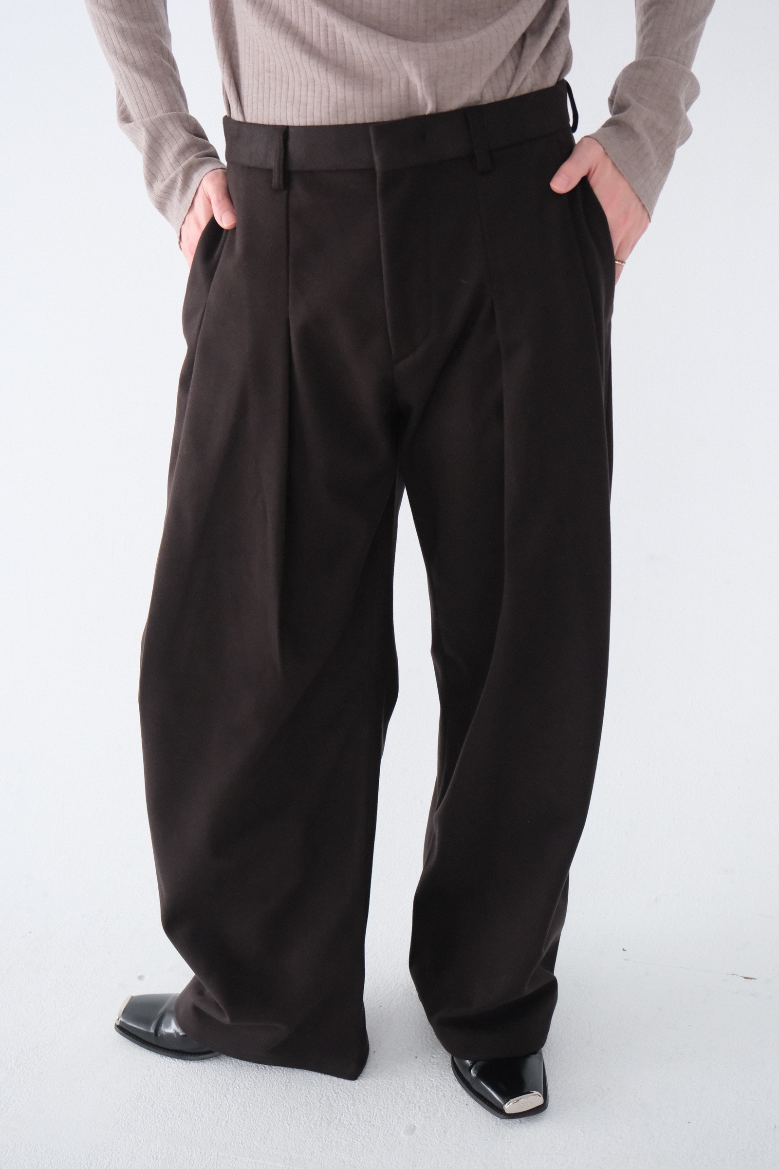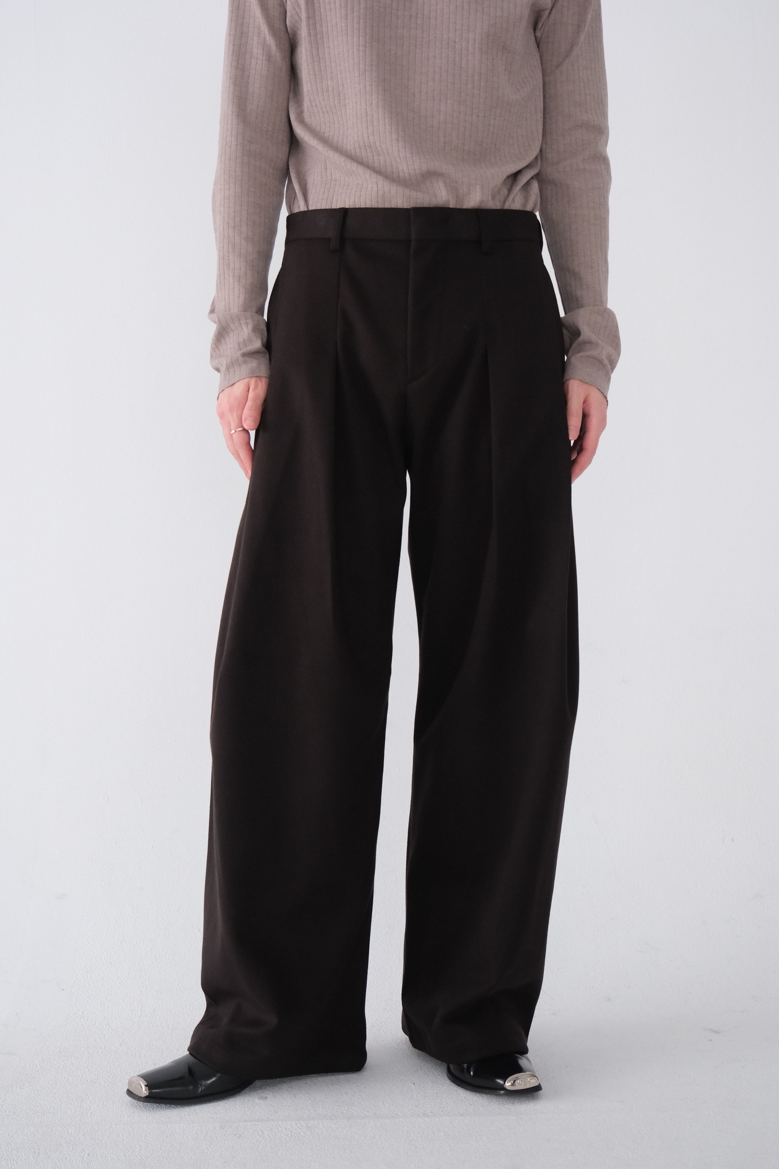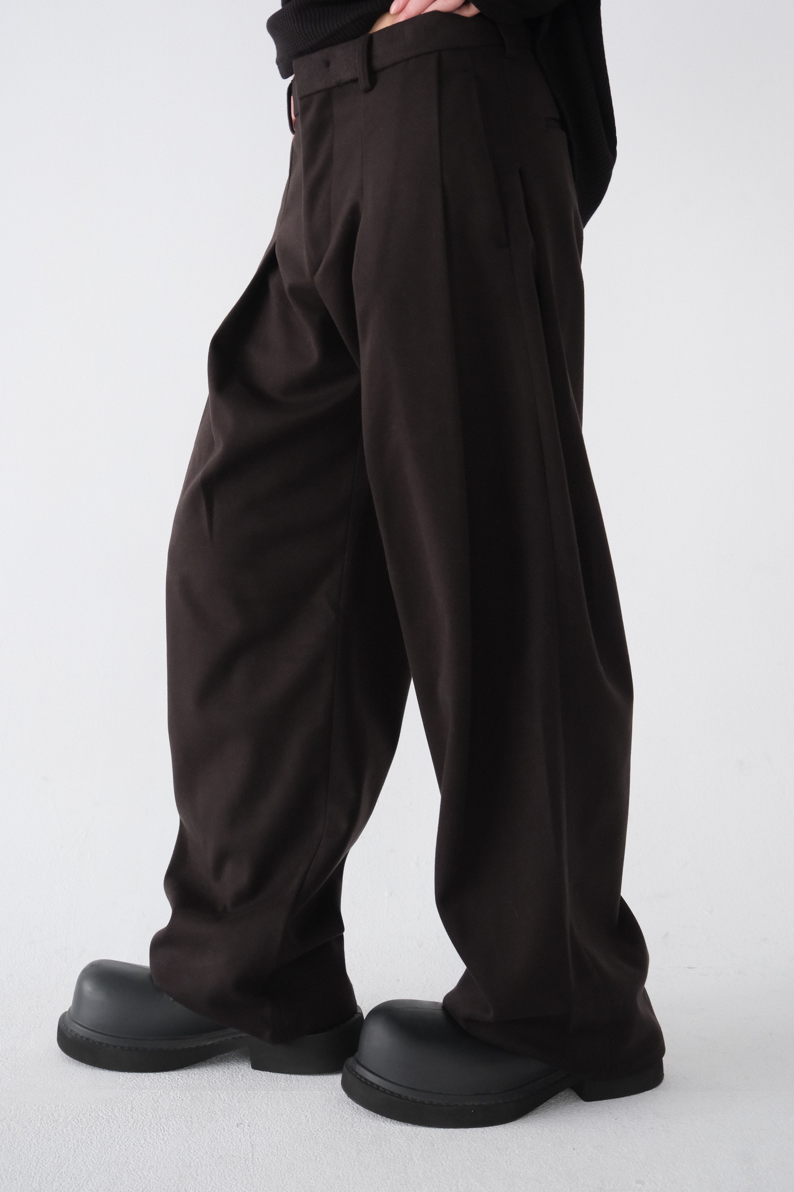 雖然是寬褲,不過穿上去腿縫還是會有,整體很修長