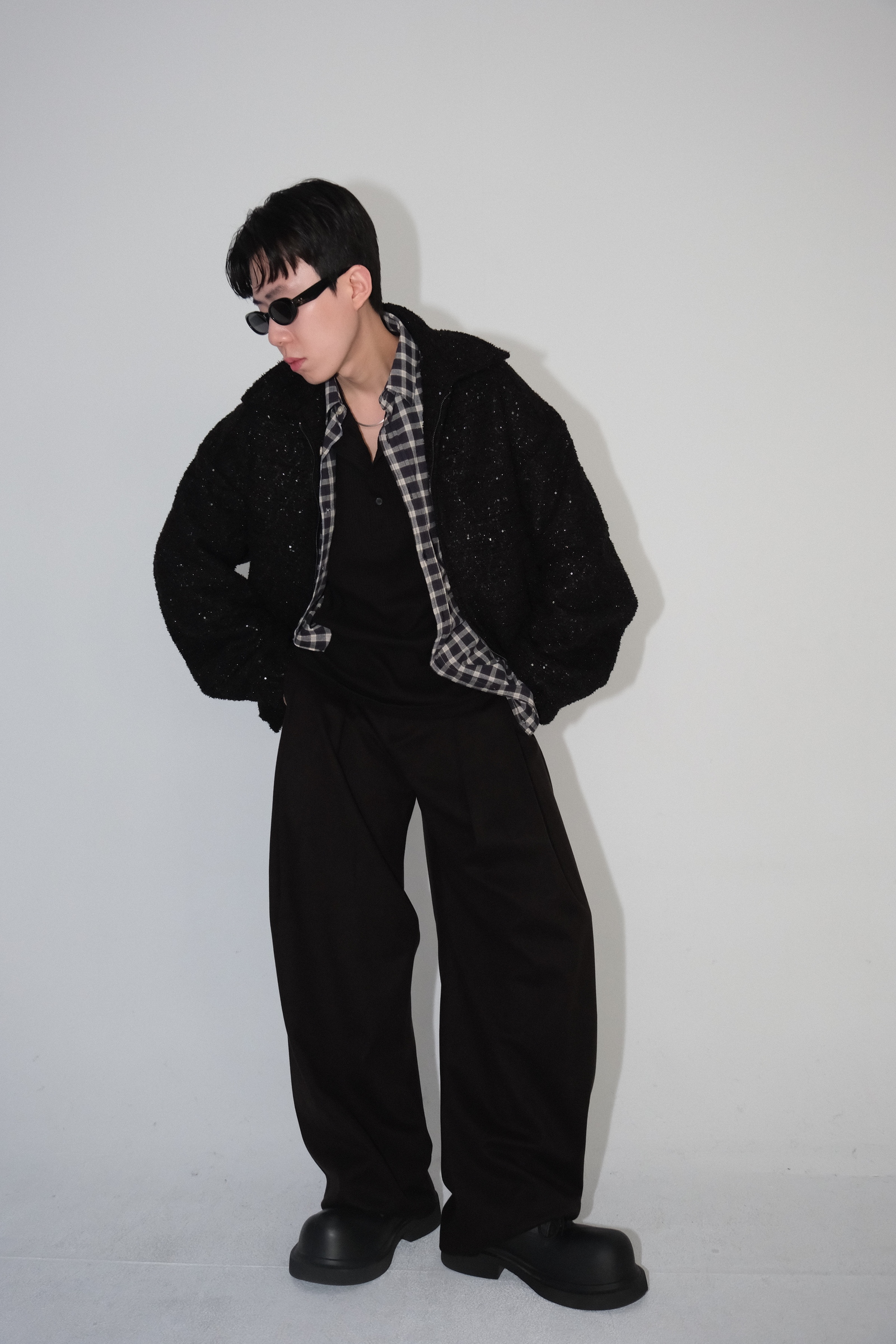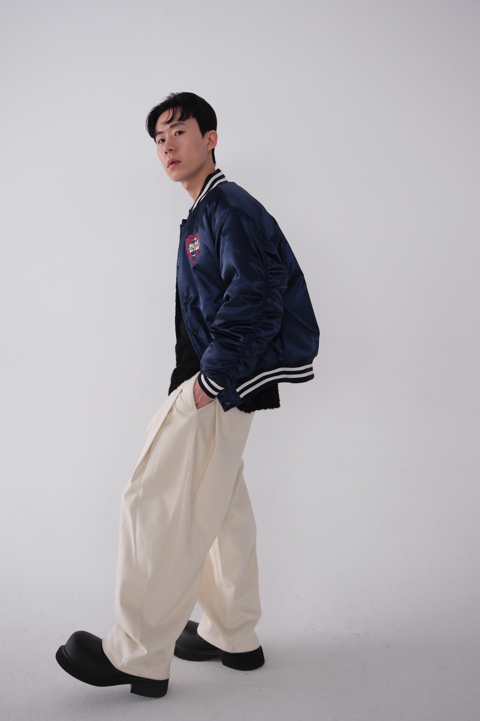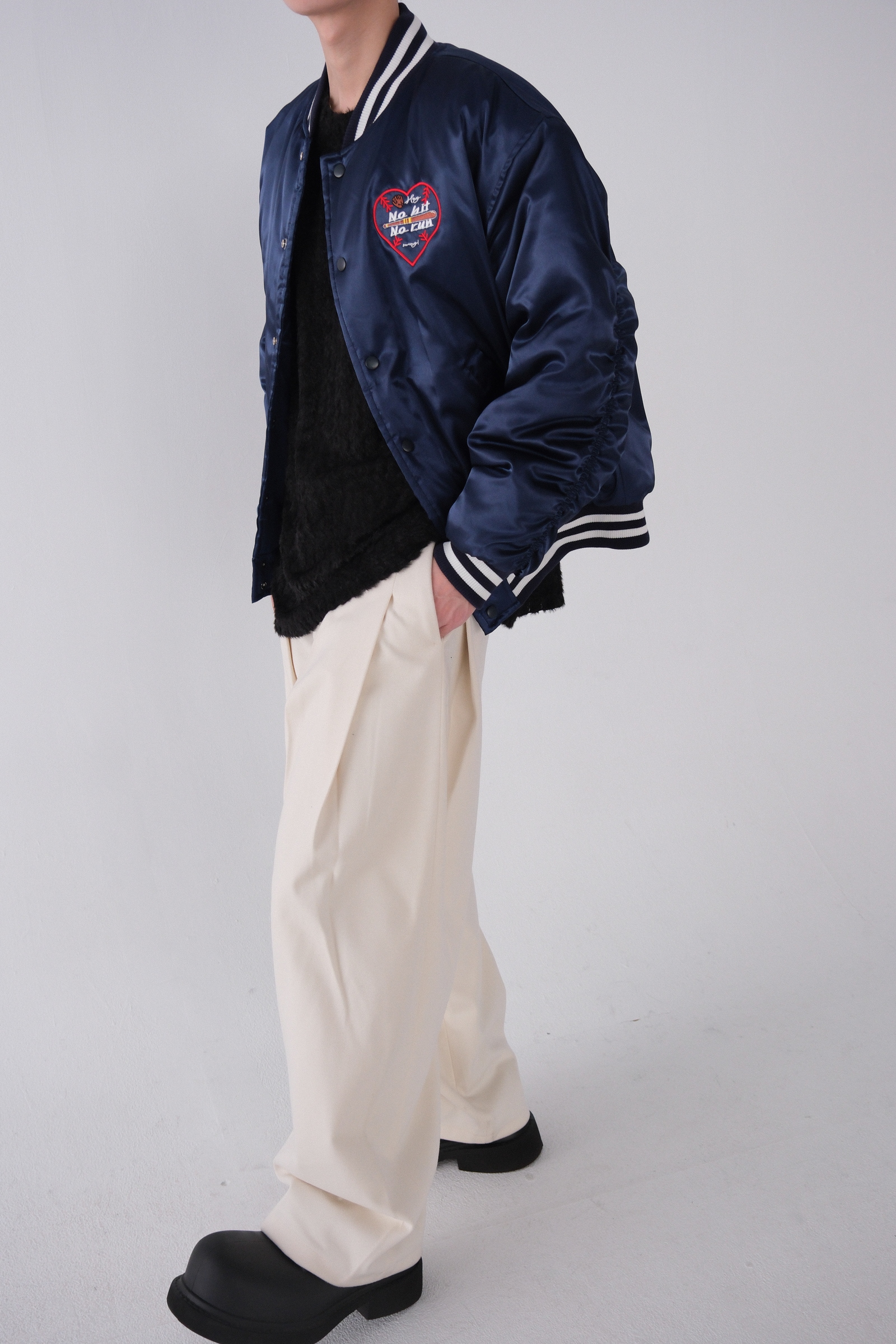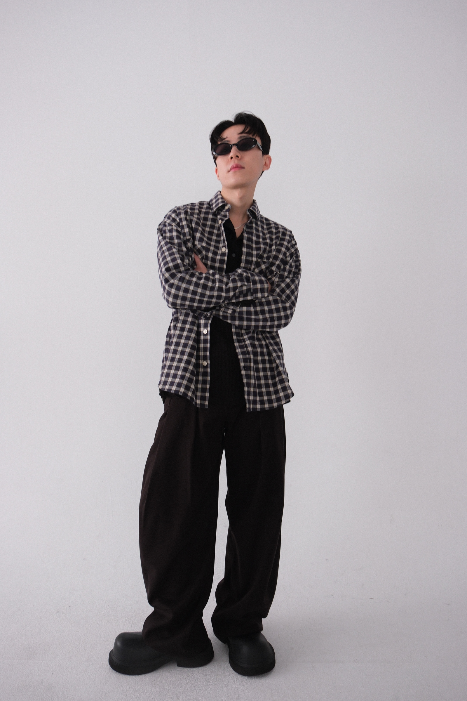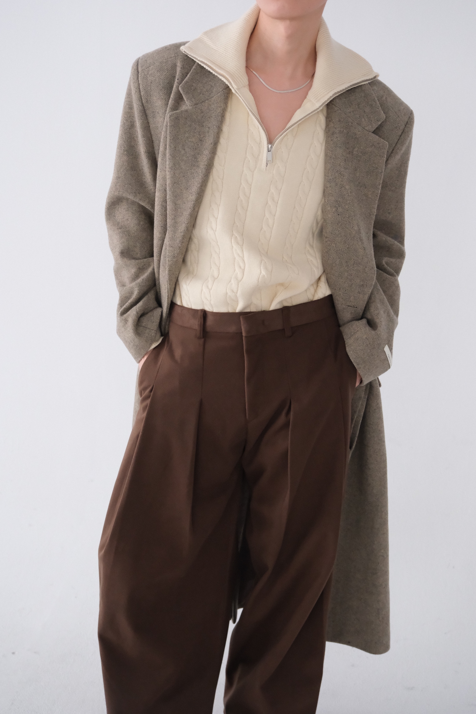 雖然是寬褲,不過穿上去腿縫還是會有,整體很修長