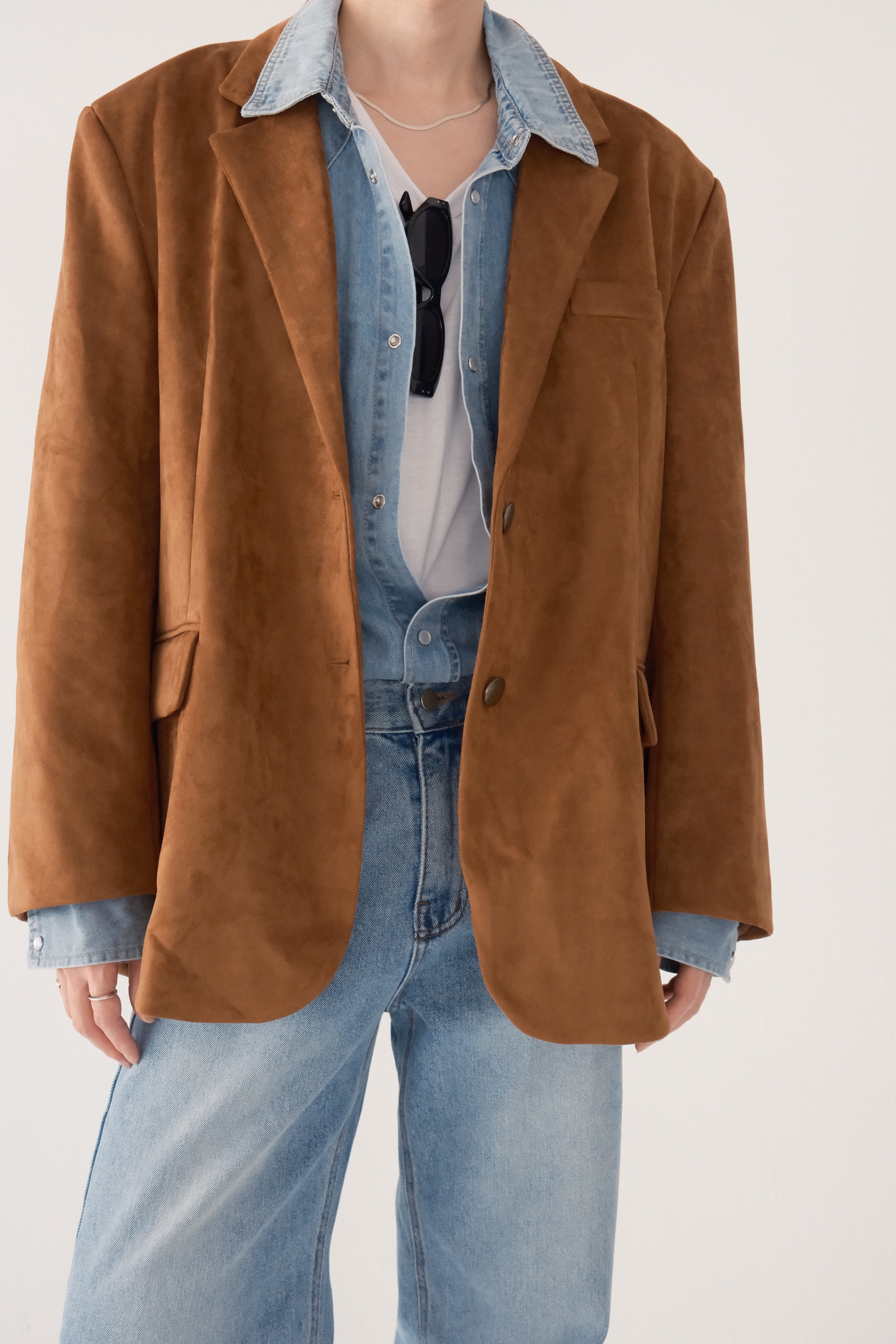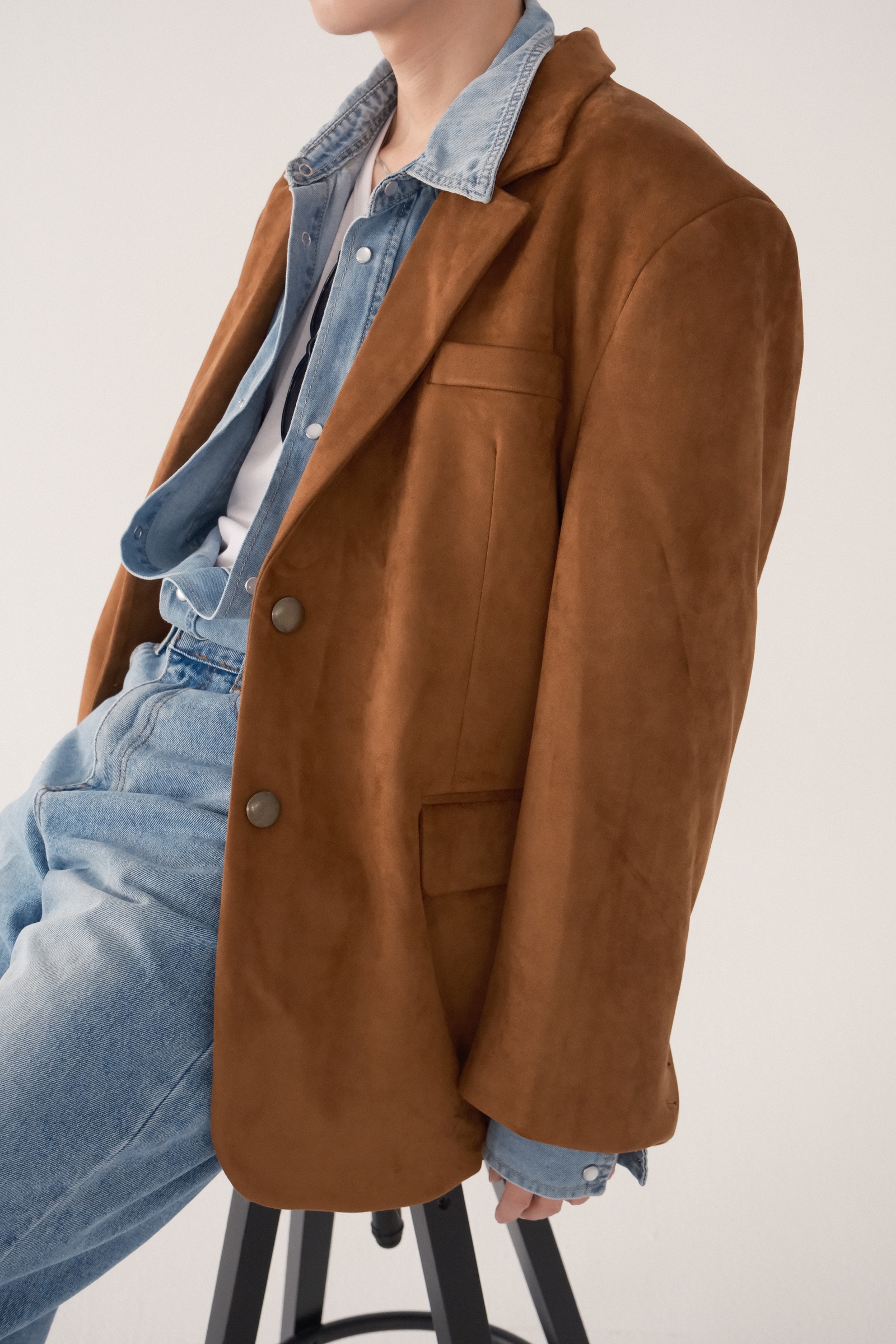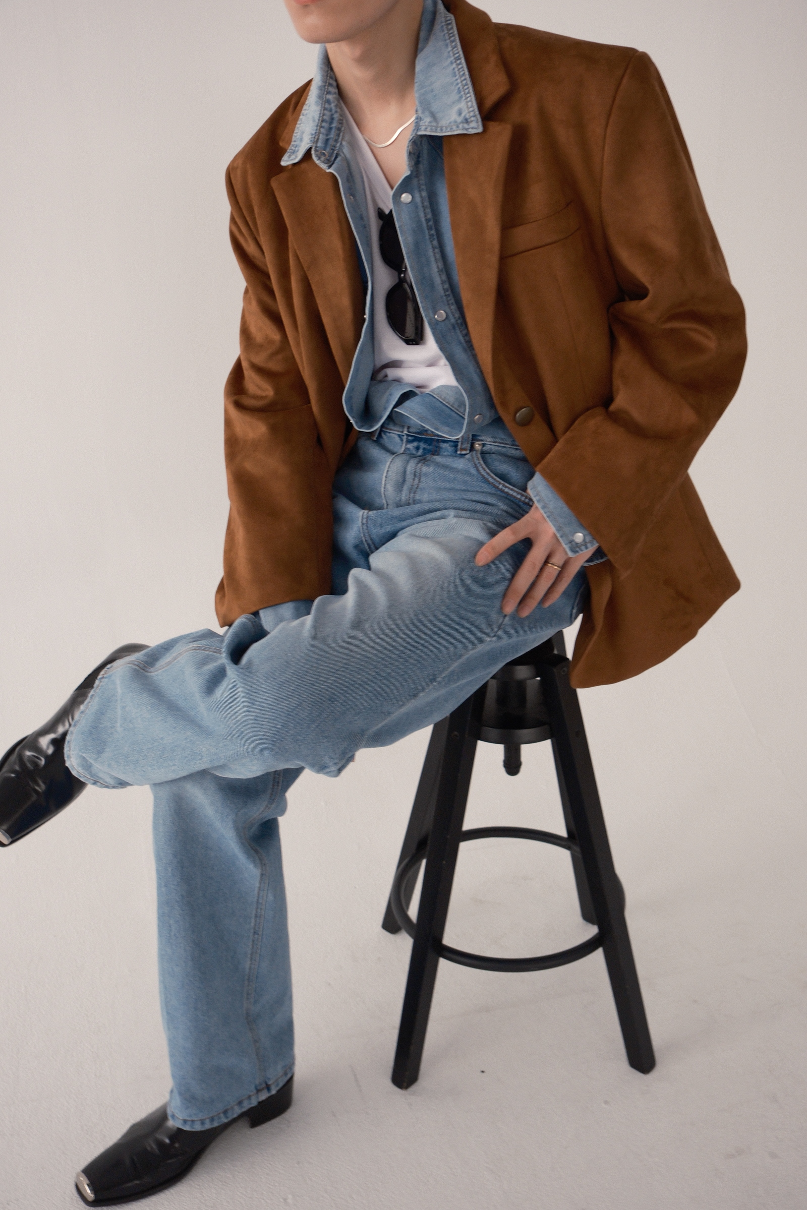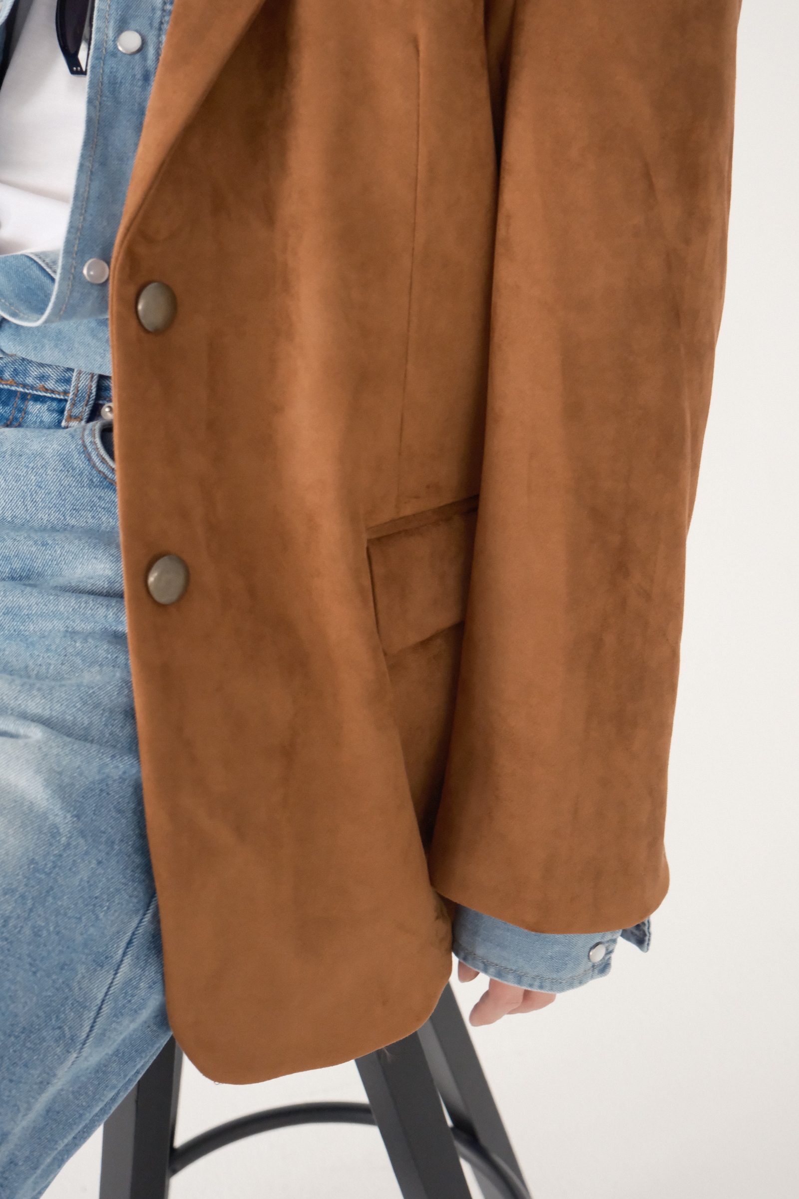 鈕扣是採用銅色的五金,搭配麂皮真的很到位