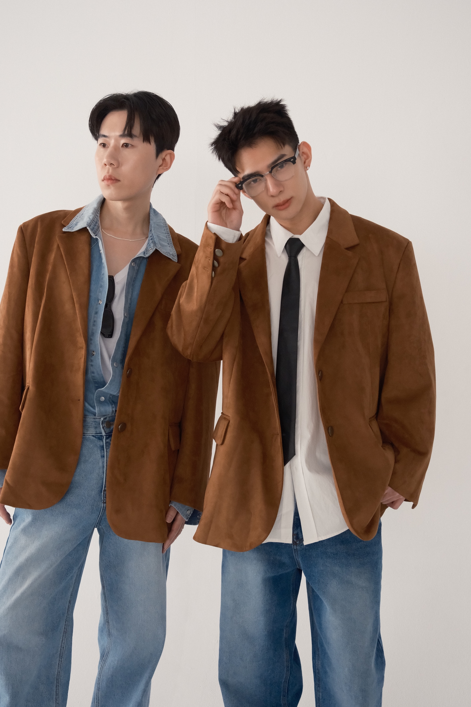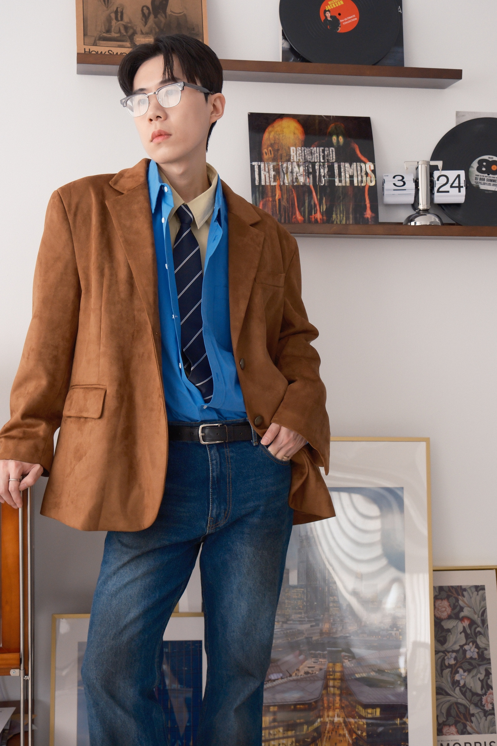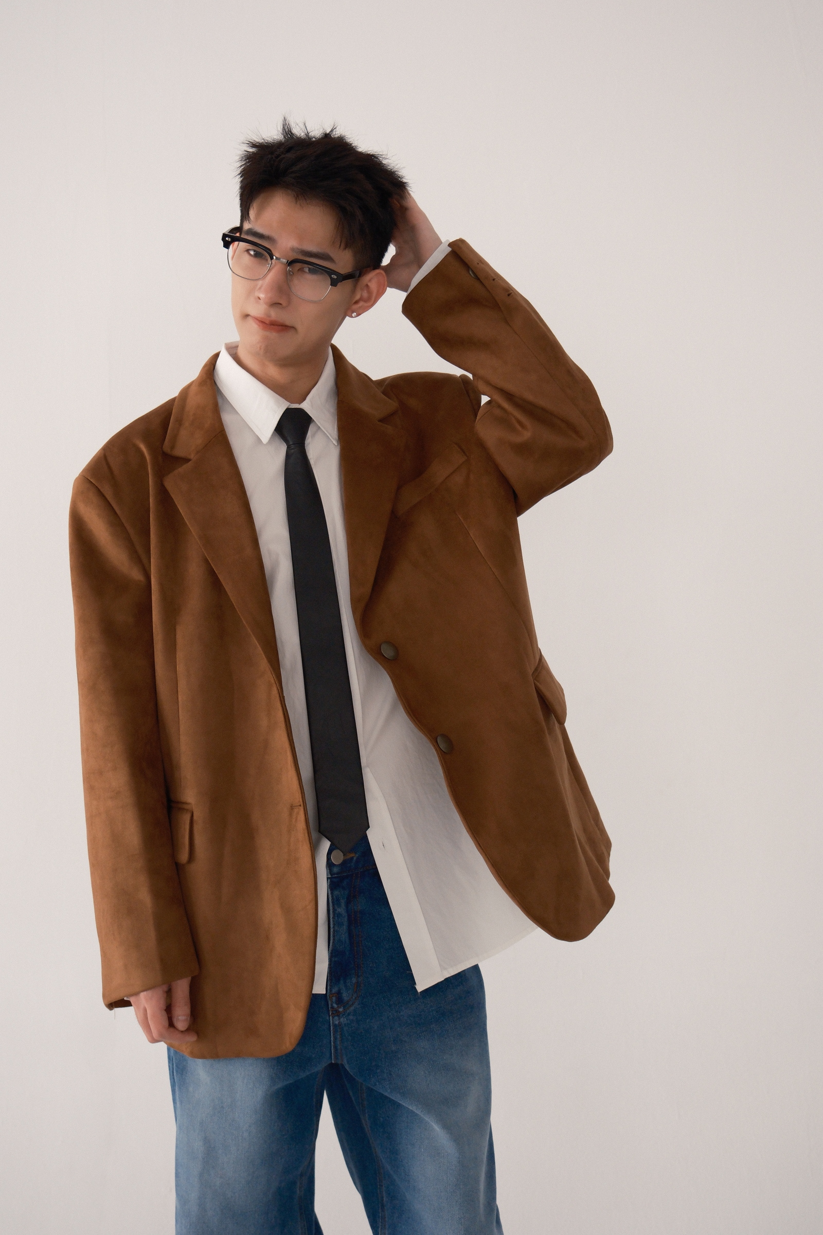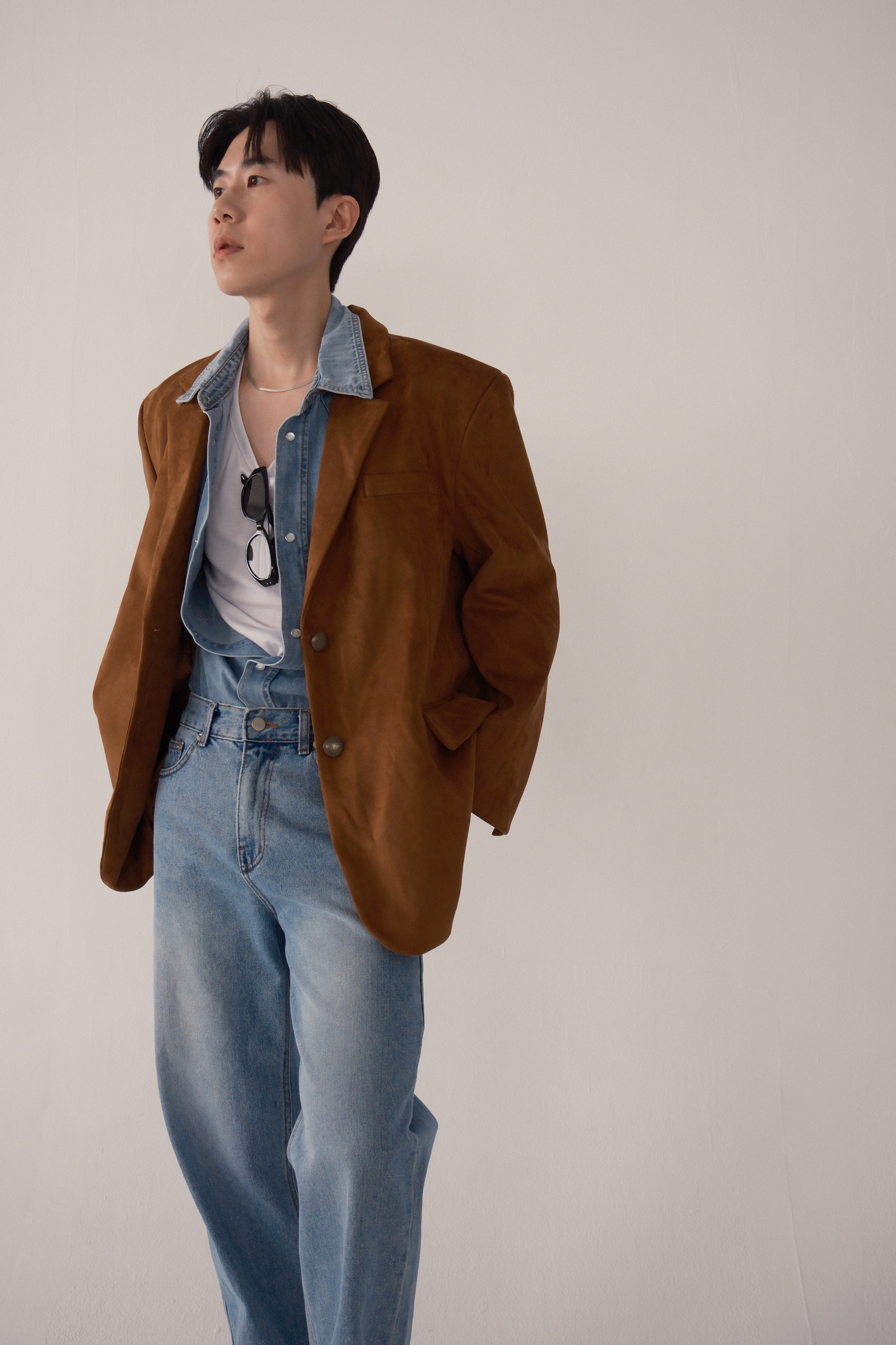 鈕扣是採用銅色的五金,搭配麂皮真的很到位