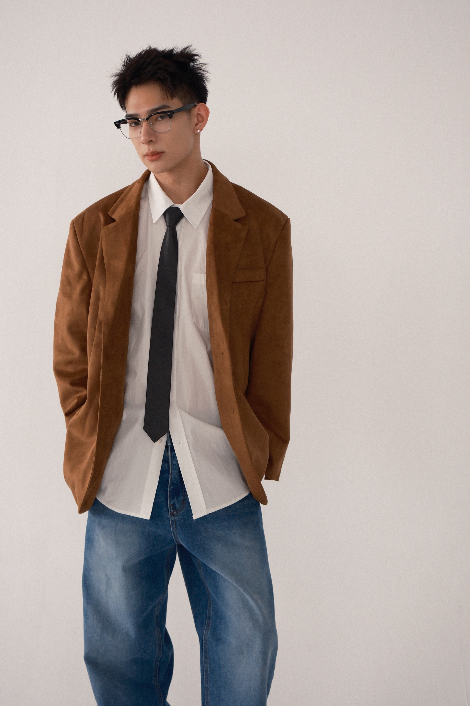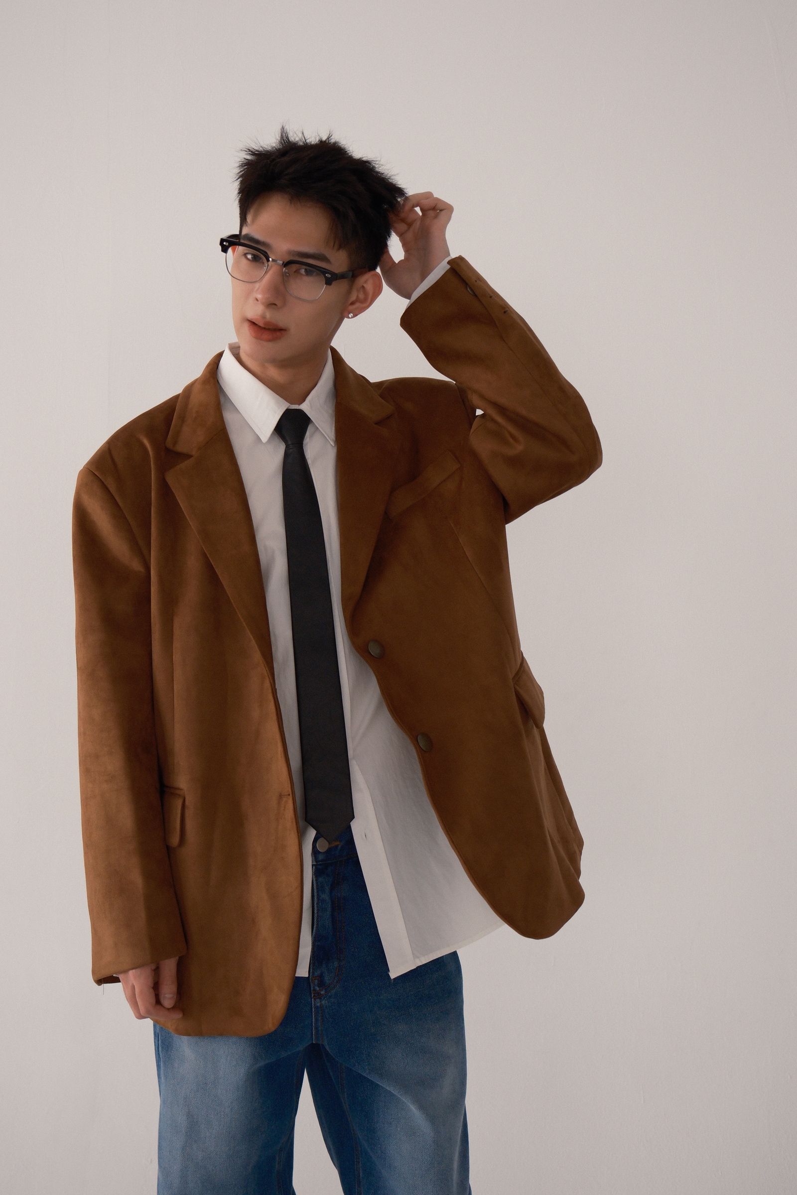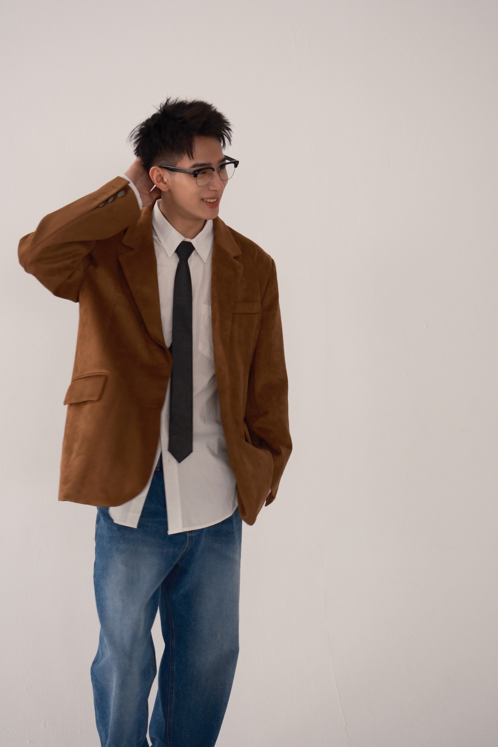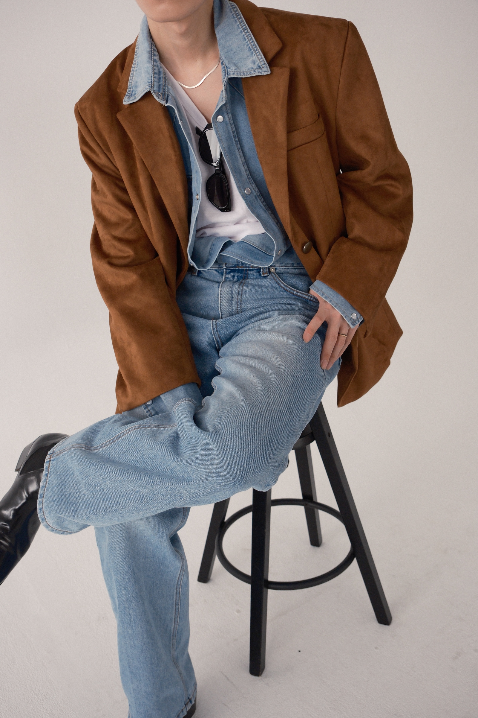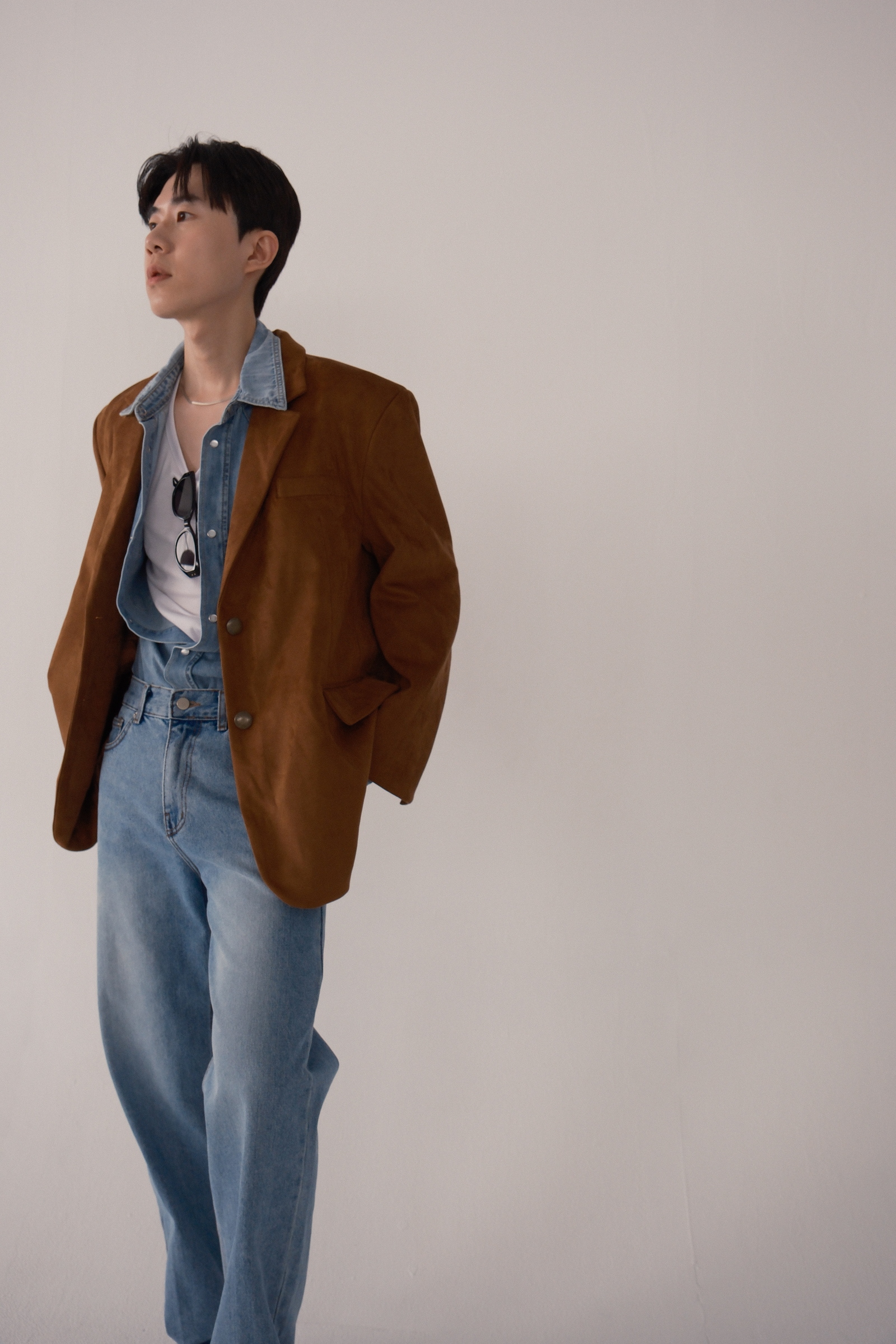 鈕扣是採用銅色的五金,搭配麂皮真的很到位