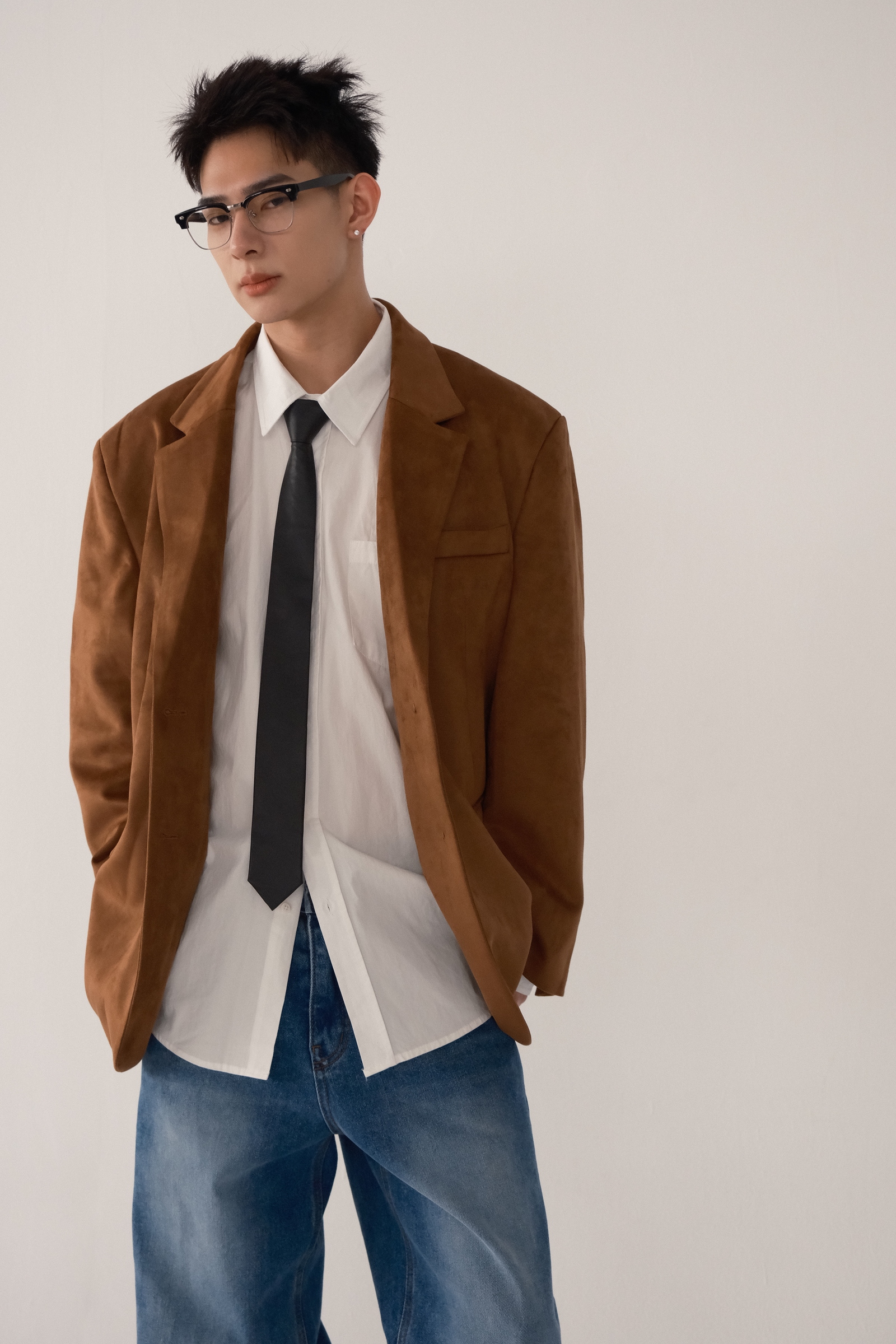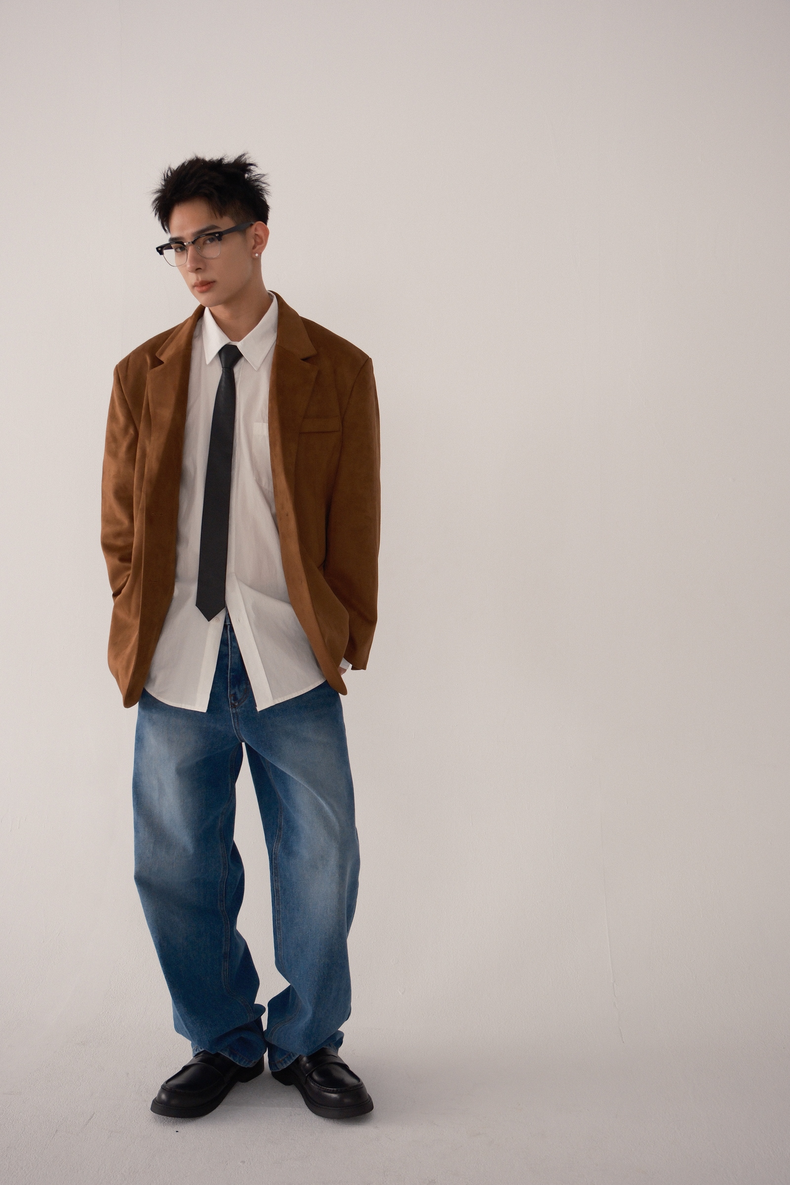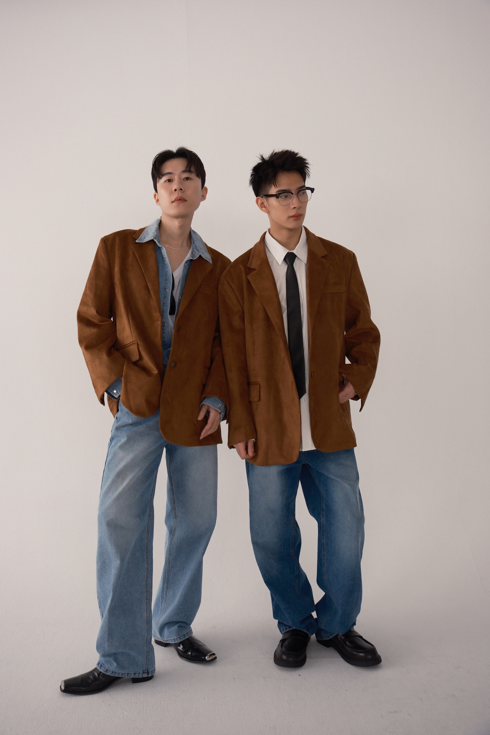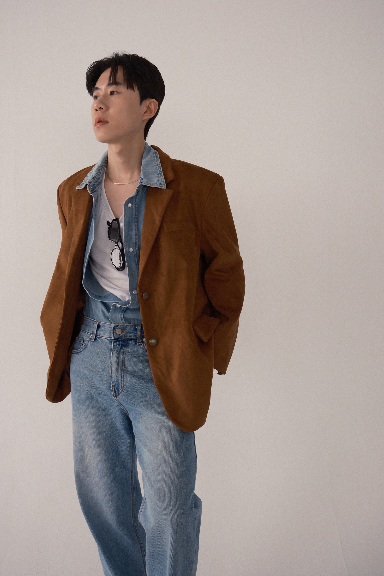 鈕扣是採用銅色的五金,搭配麂皮真的很到位