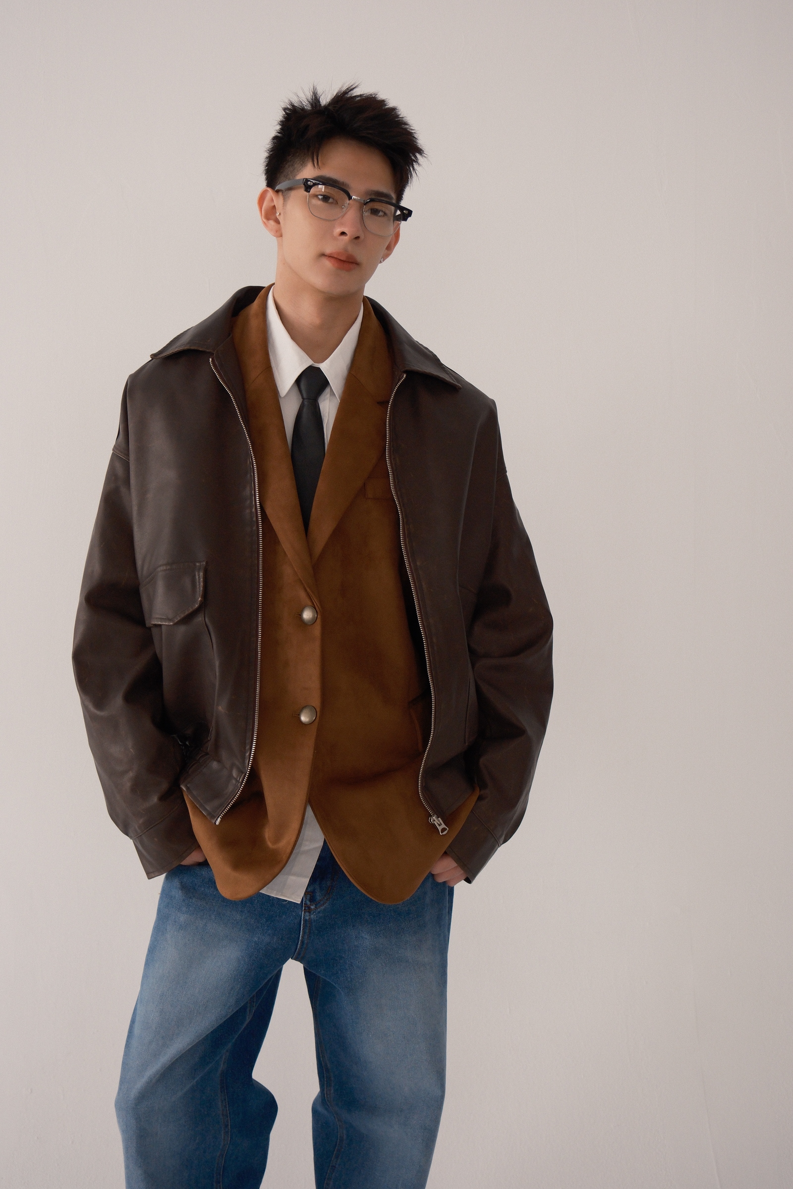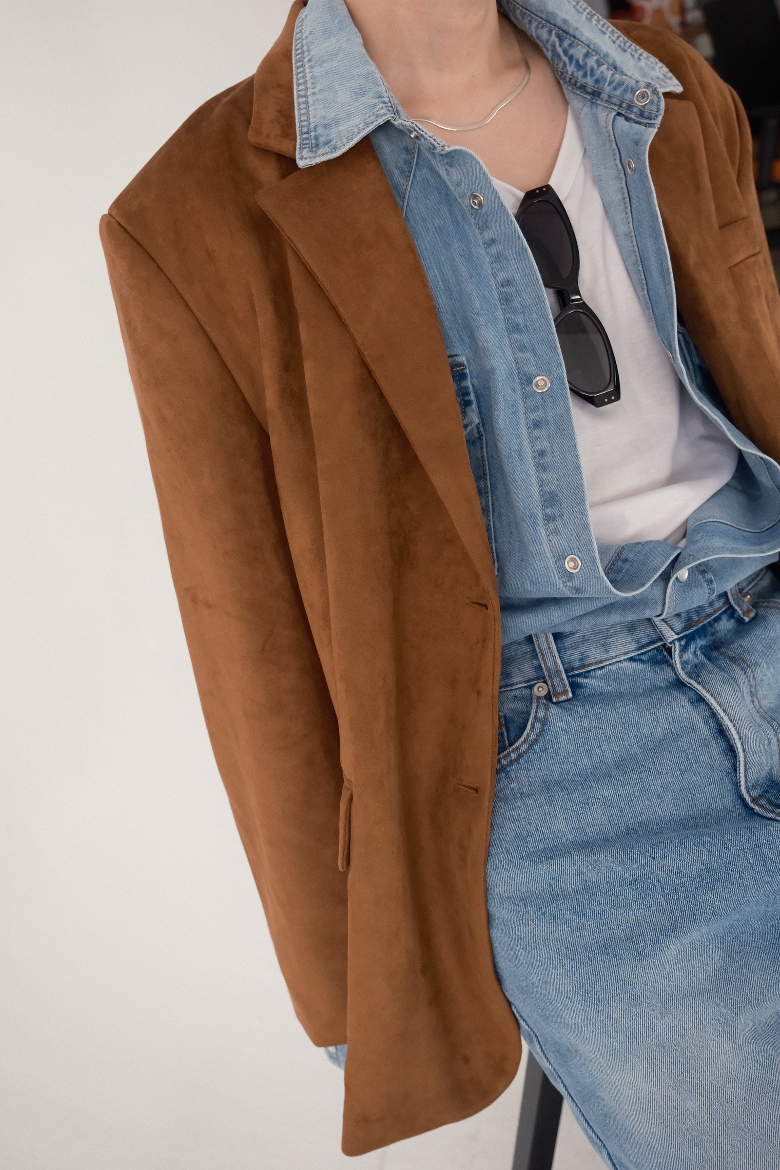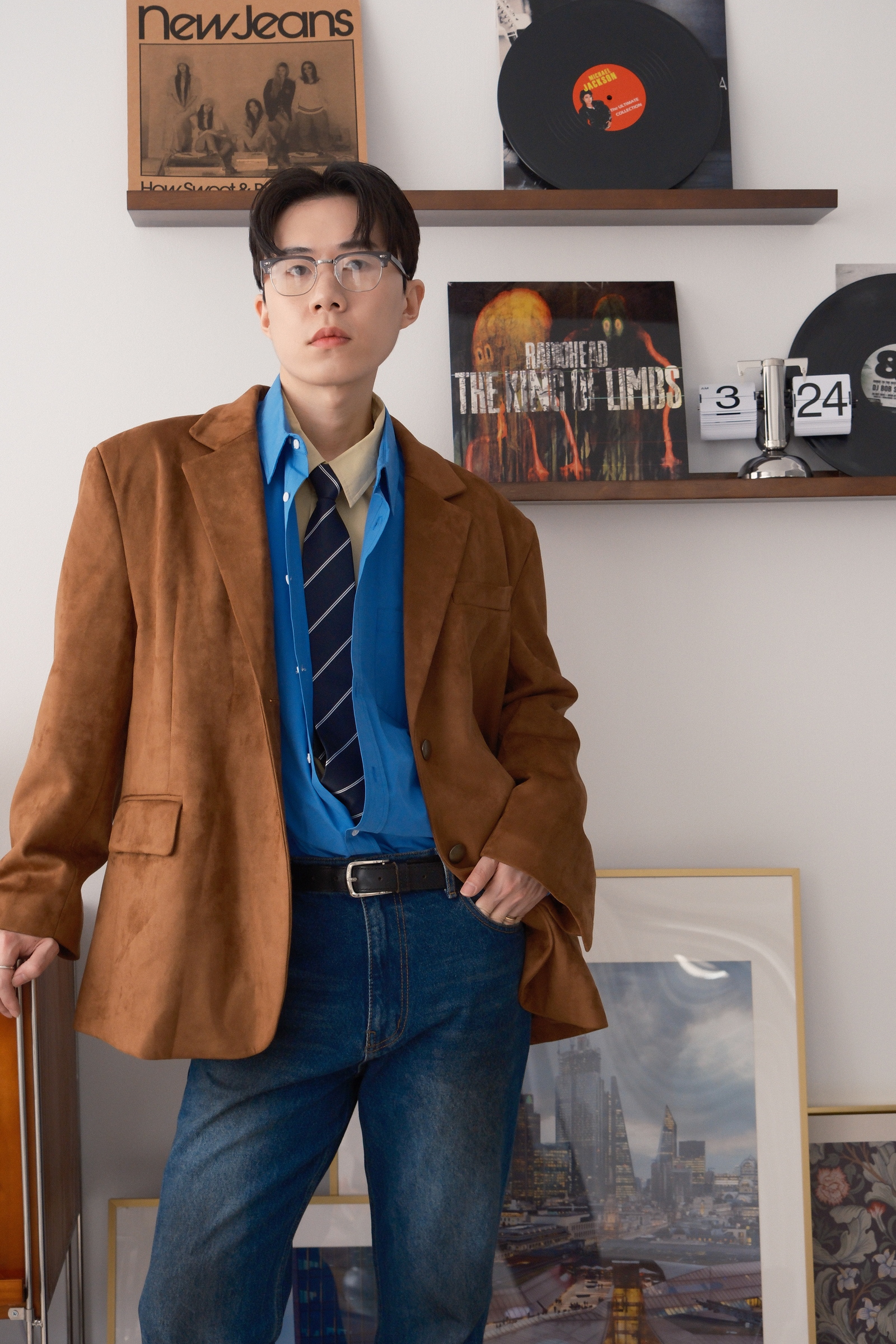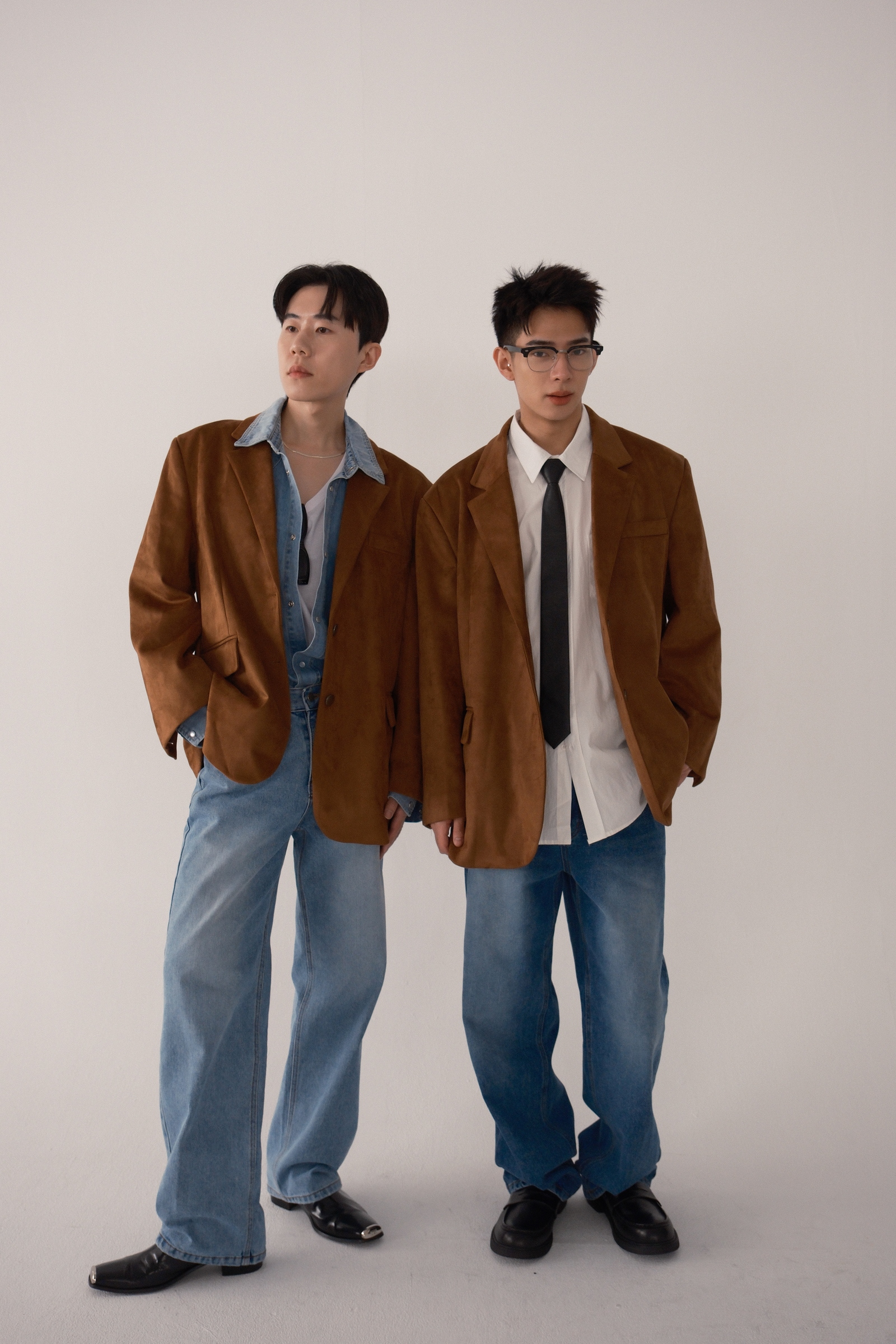 鈕扣是採用銅色的五金,搭配麂皮真的很到位