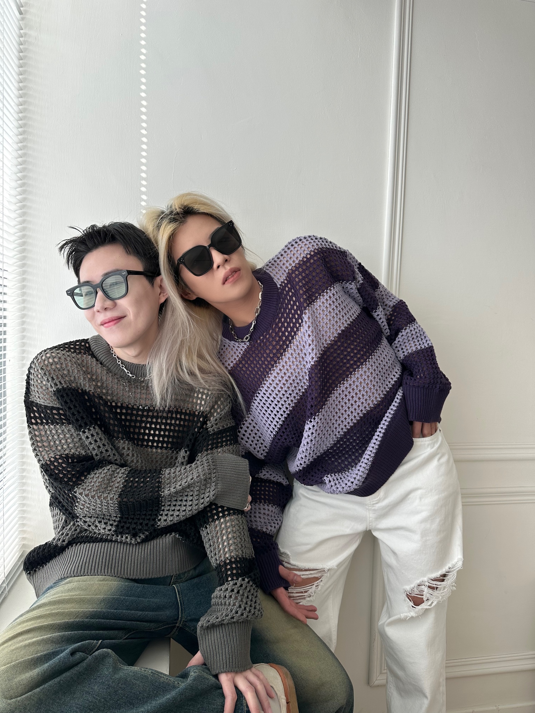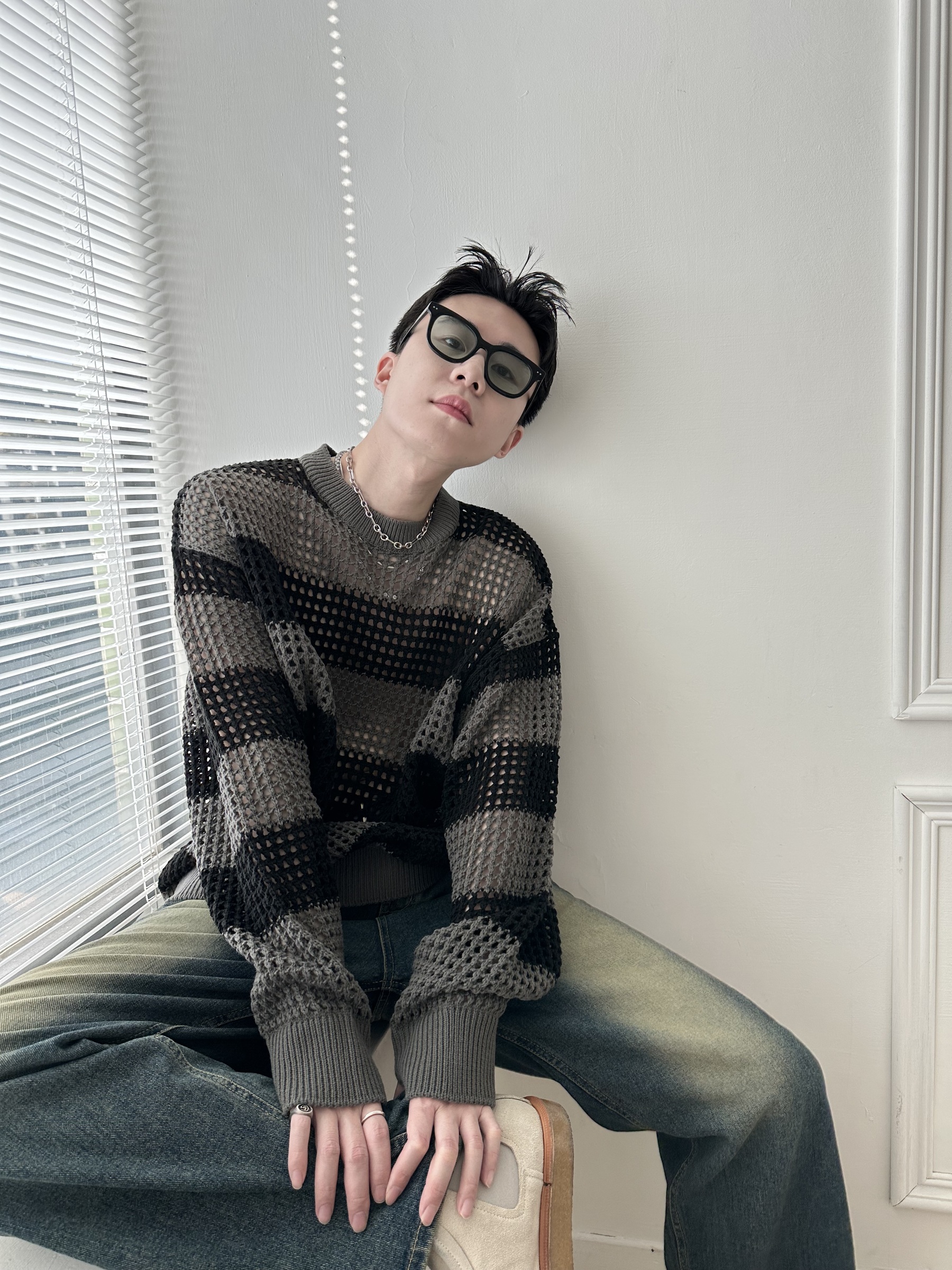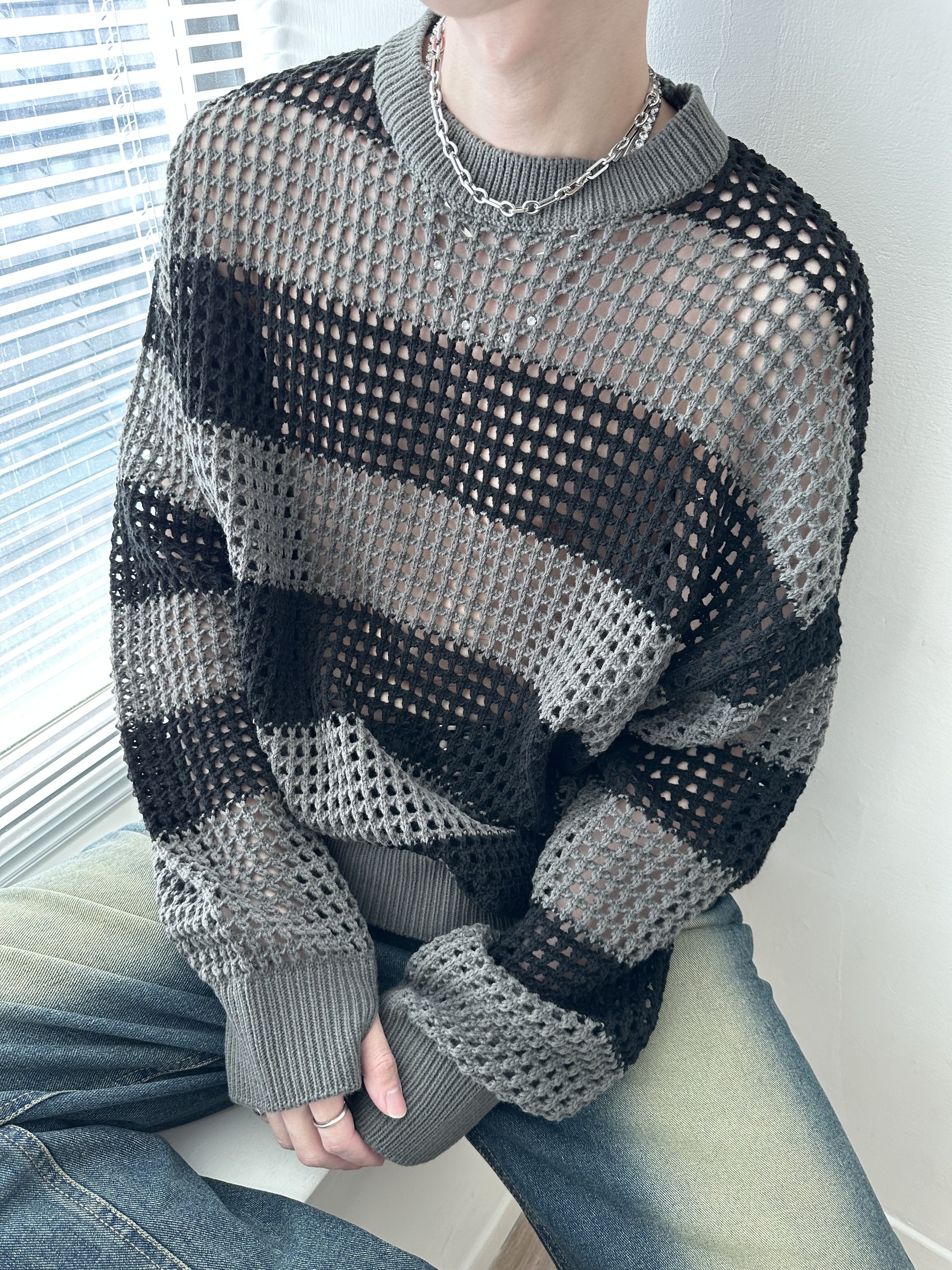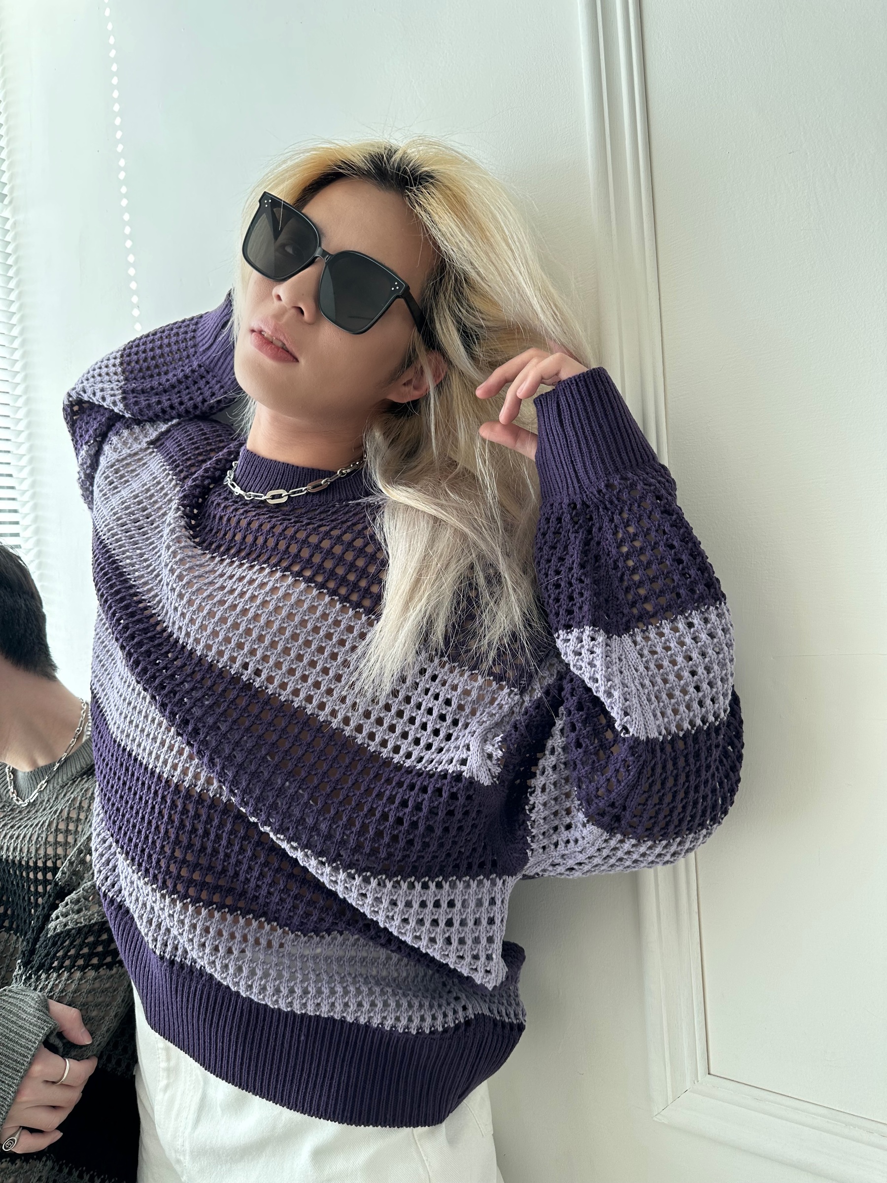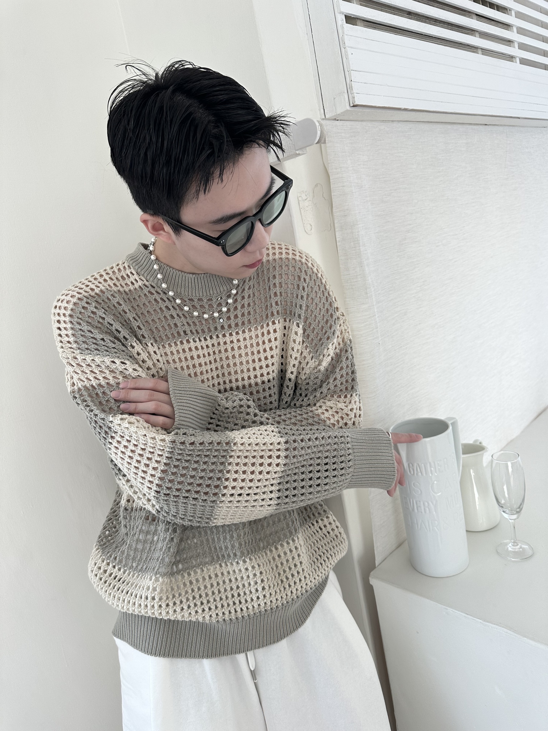 欠包色橫條洞洞透視上衣 – 田兄BroTin
