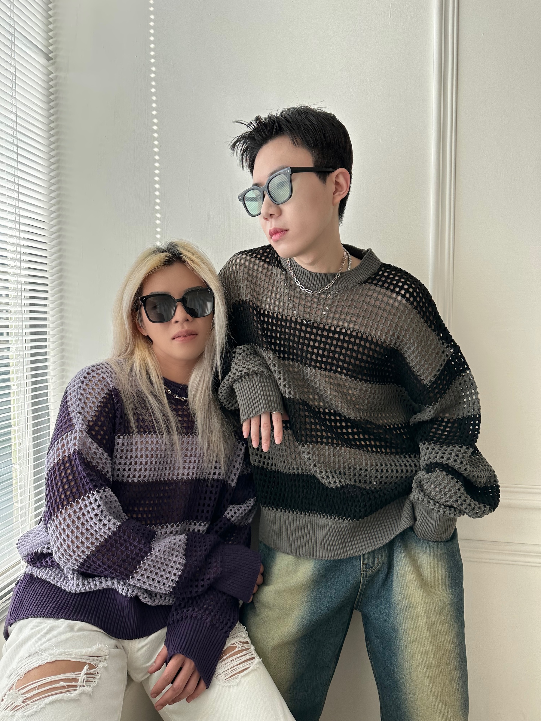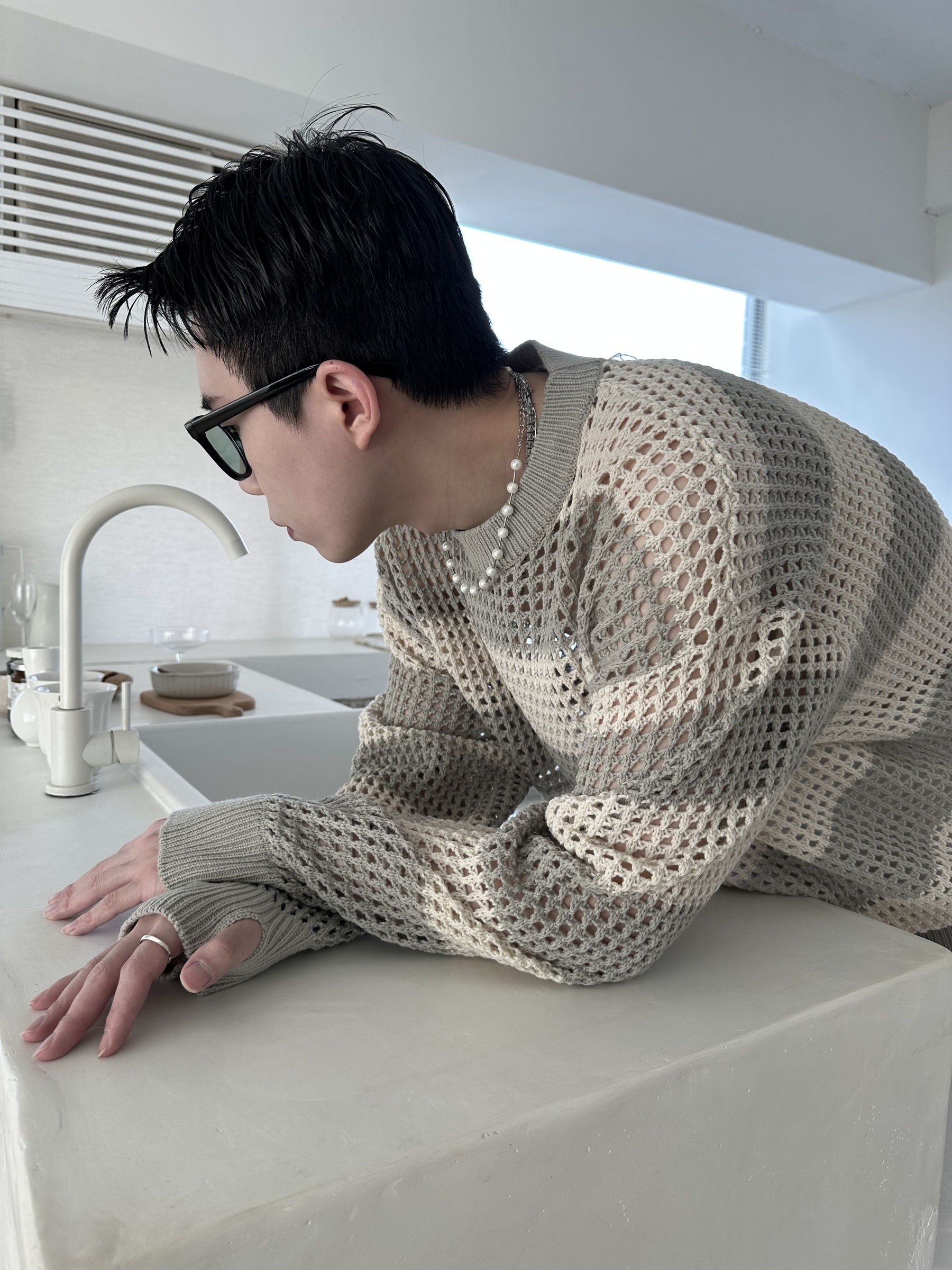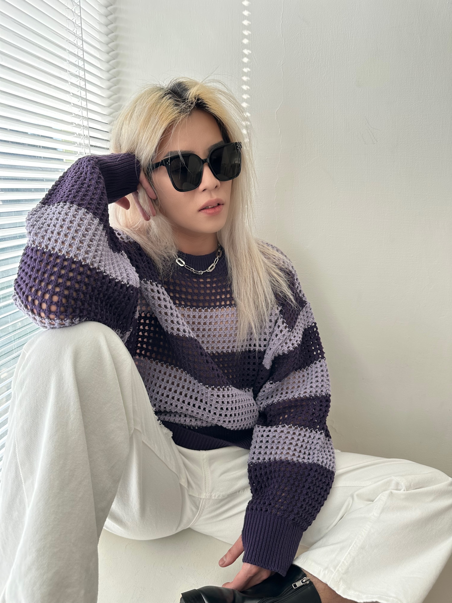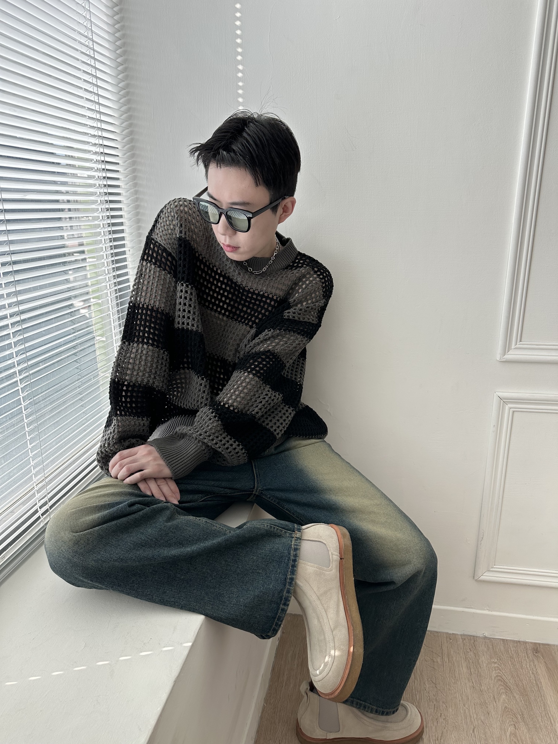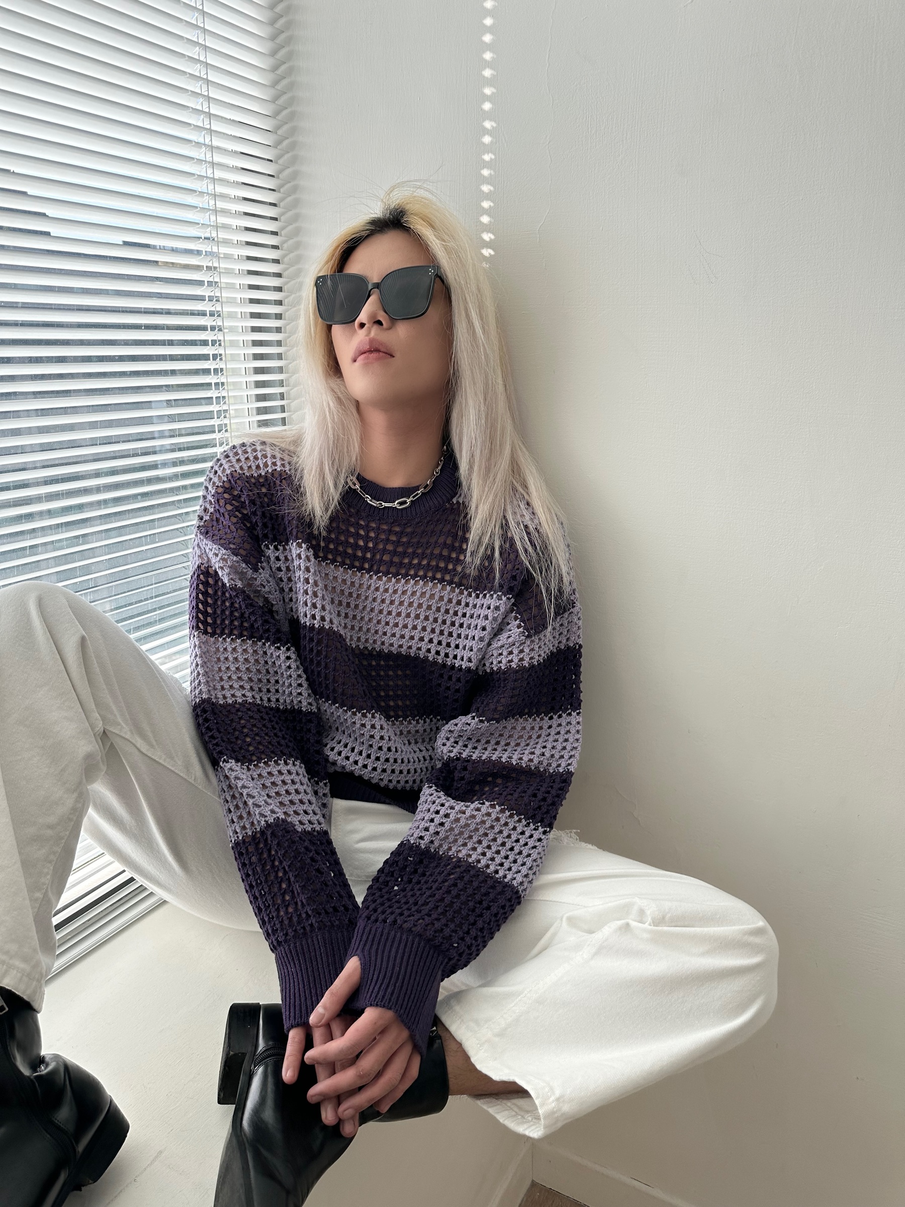 欠包色橫條洞洞透視上衣 – 田兄BroTin
