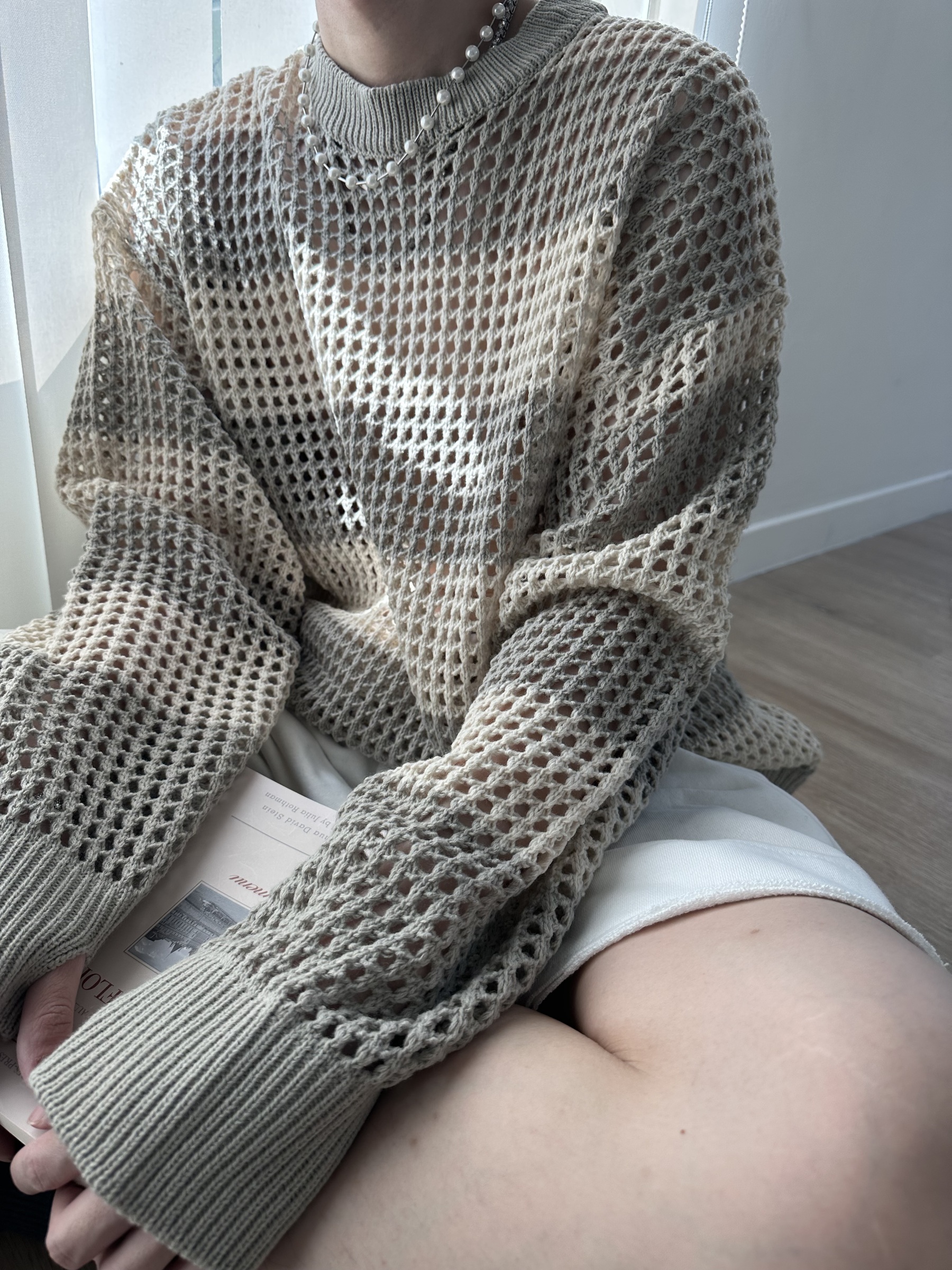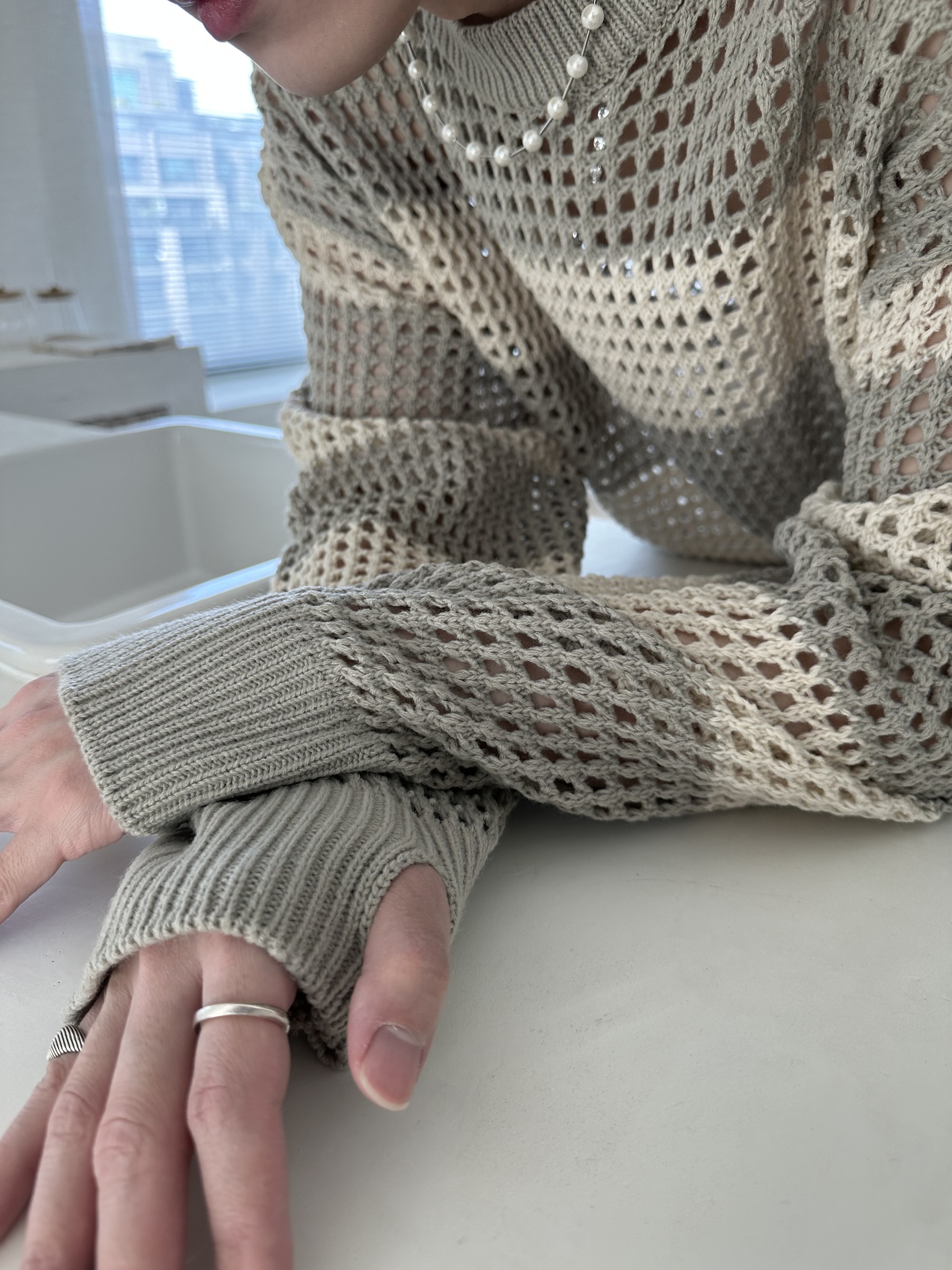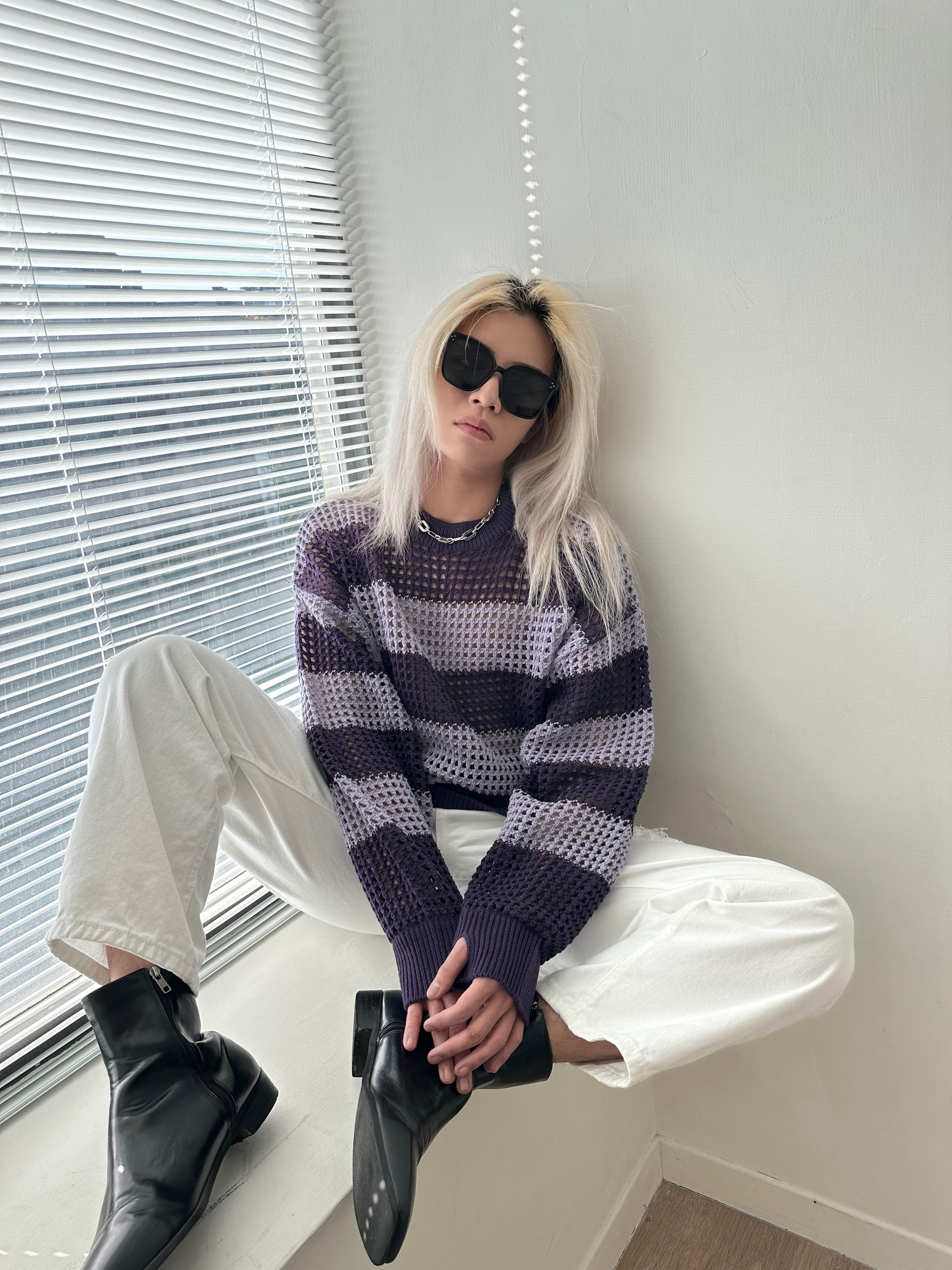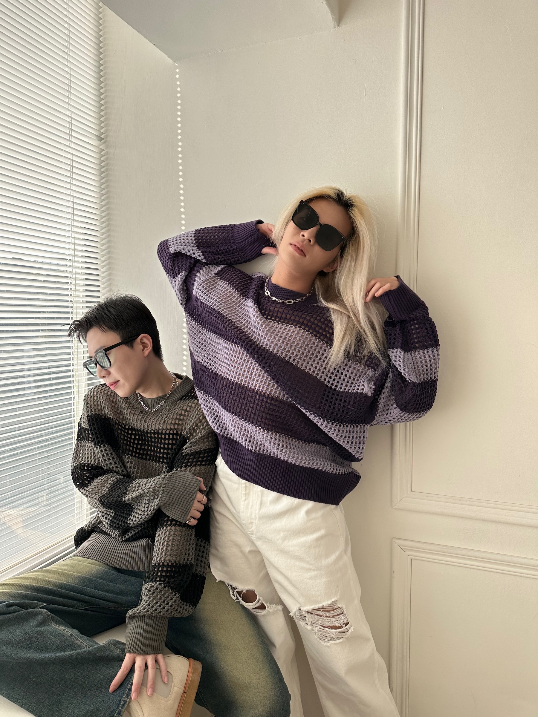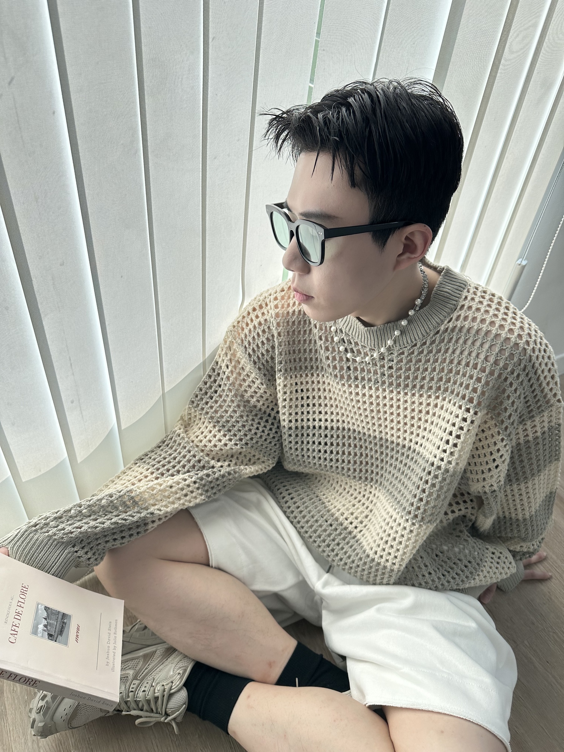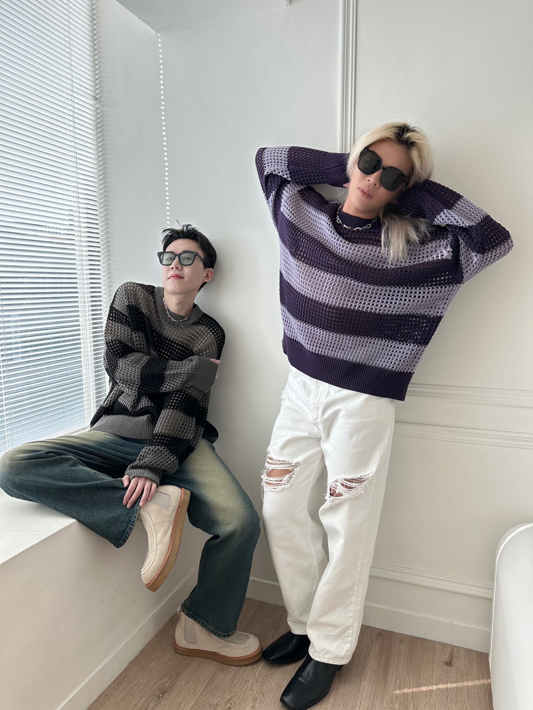 欠包色橫條洞洞透視上衣 – 田兄BroTin