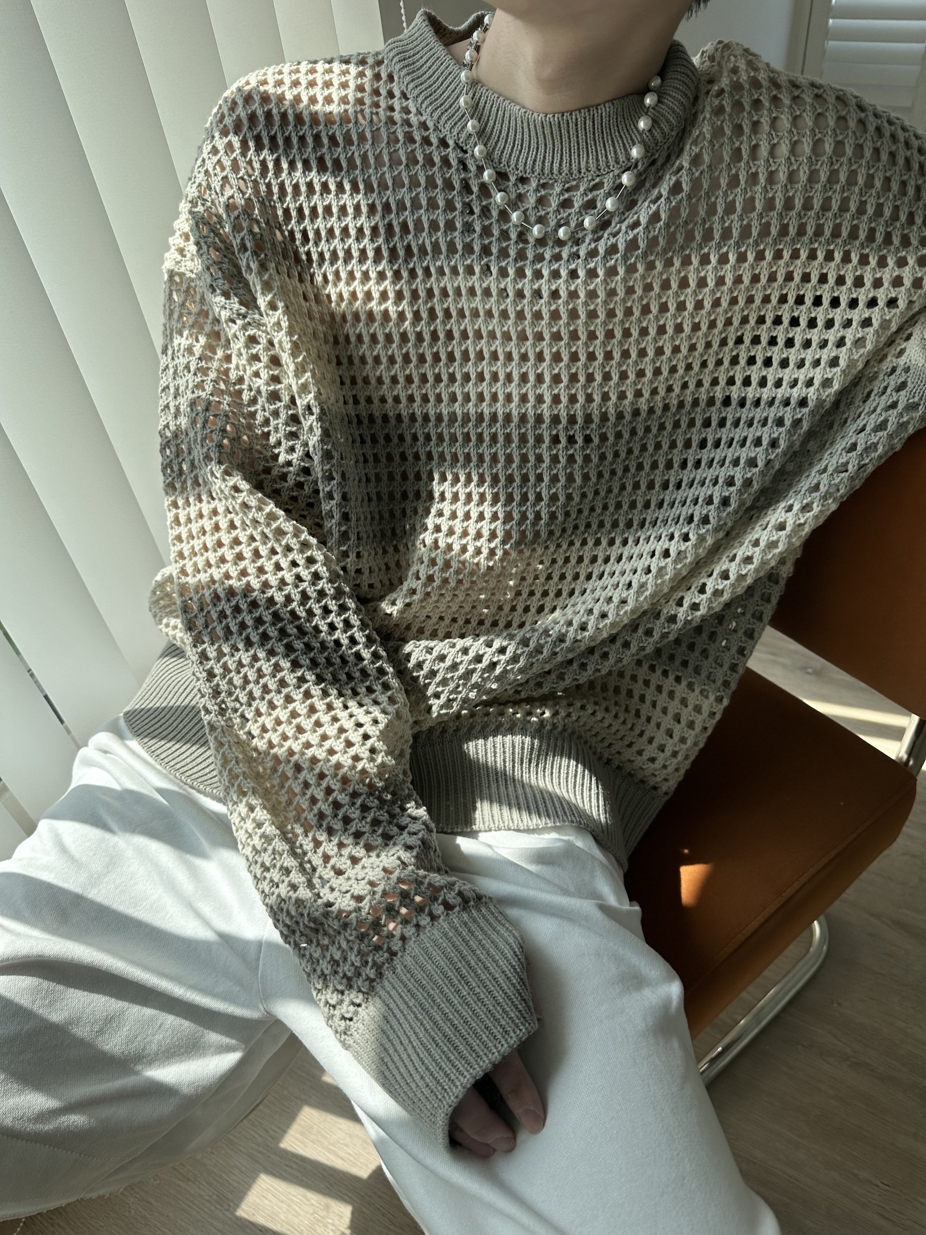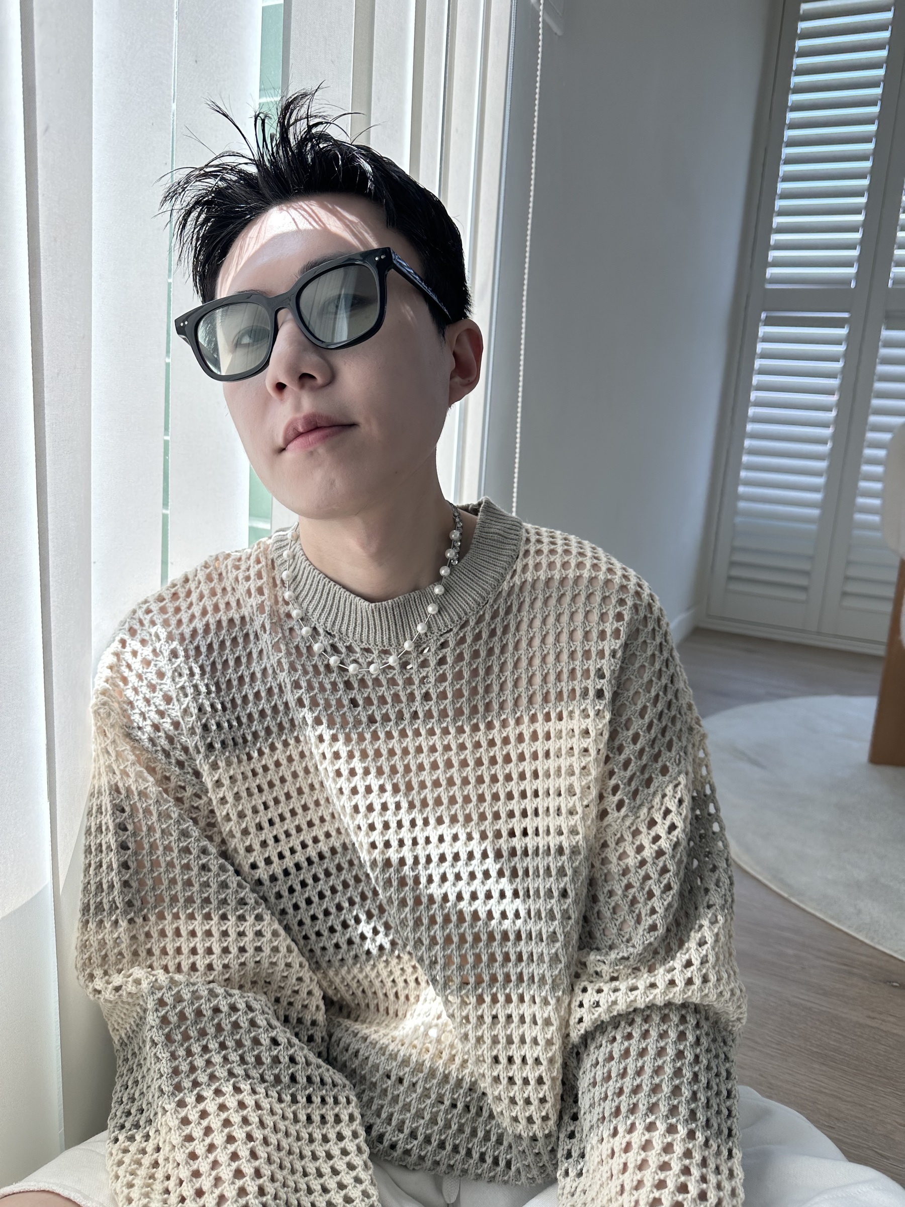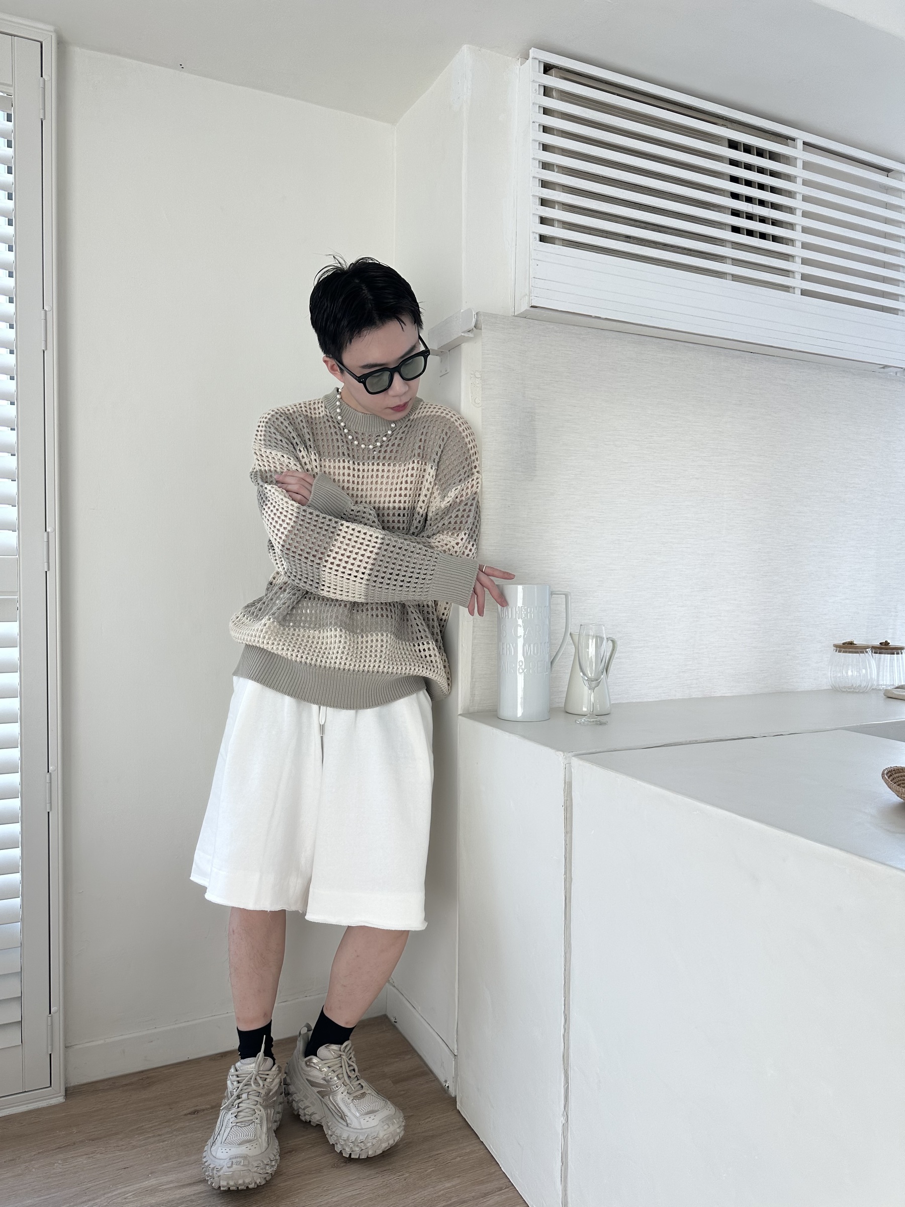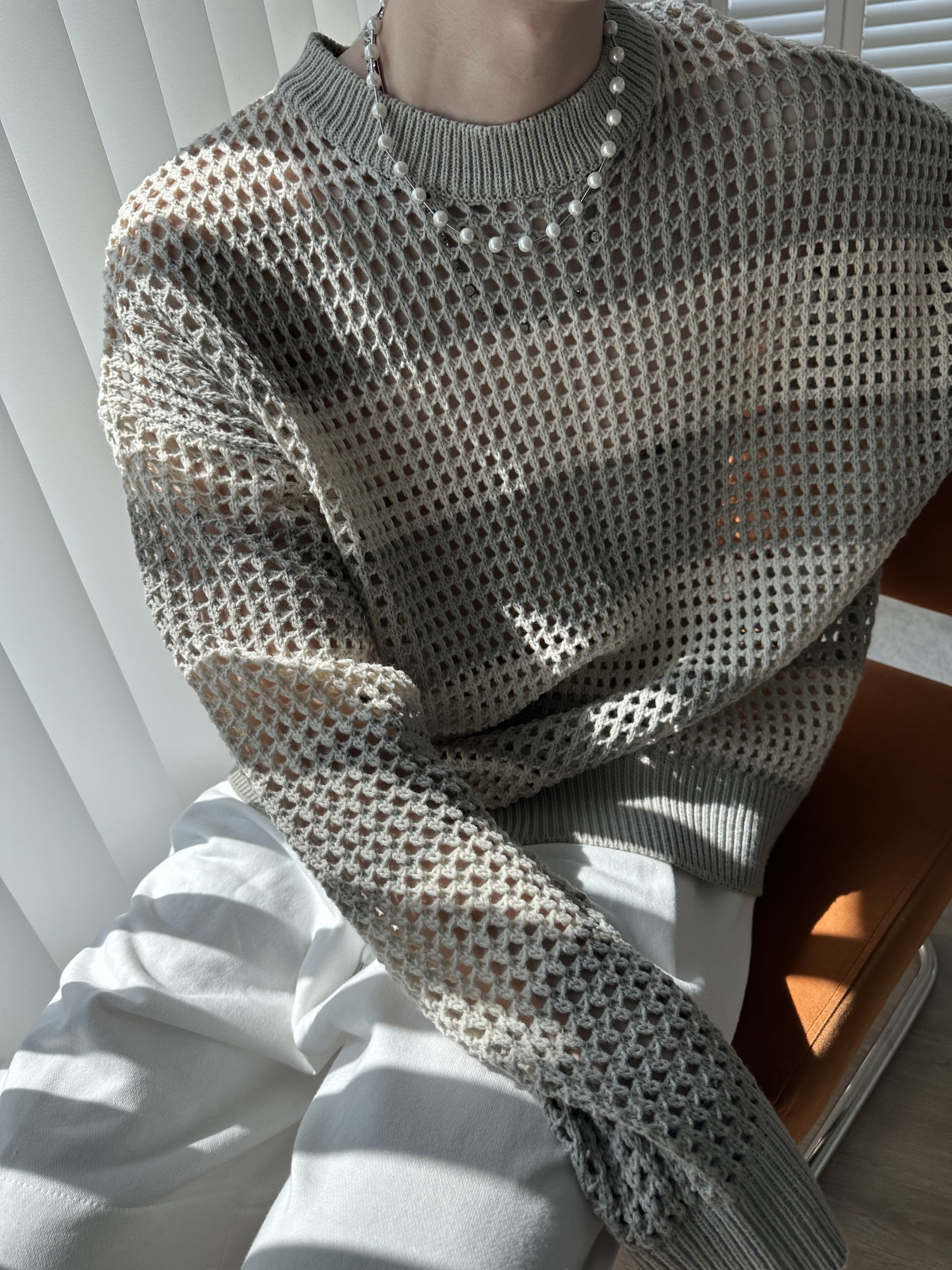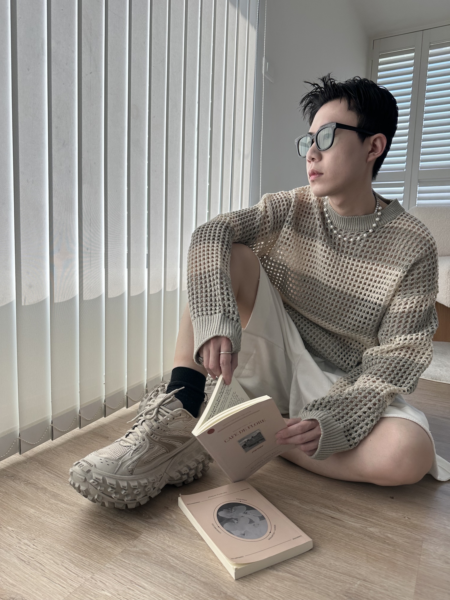 欠包色橫條洞洞透視上衣 – 田兄BroTin