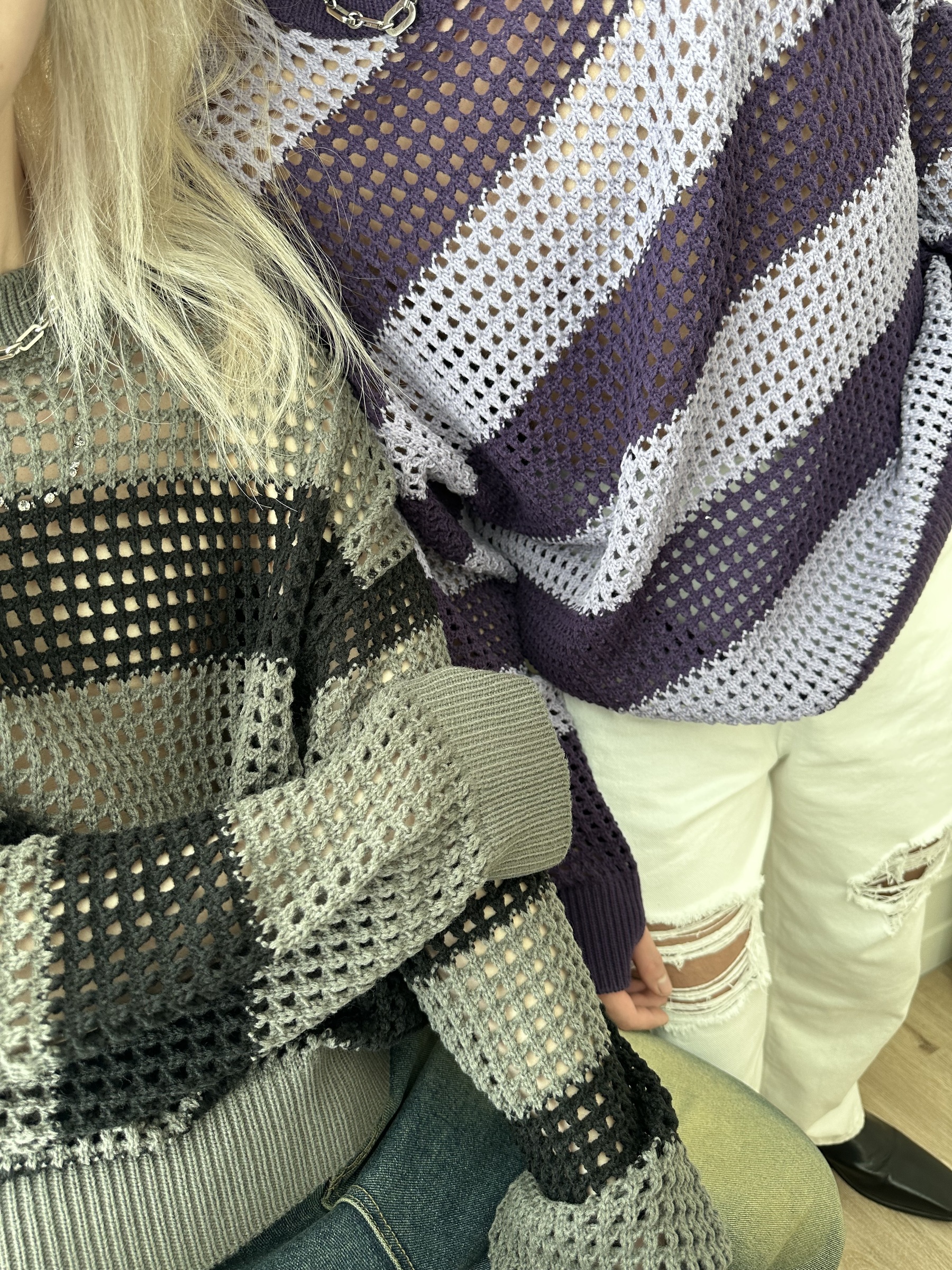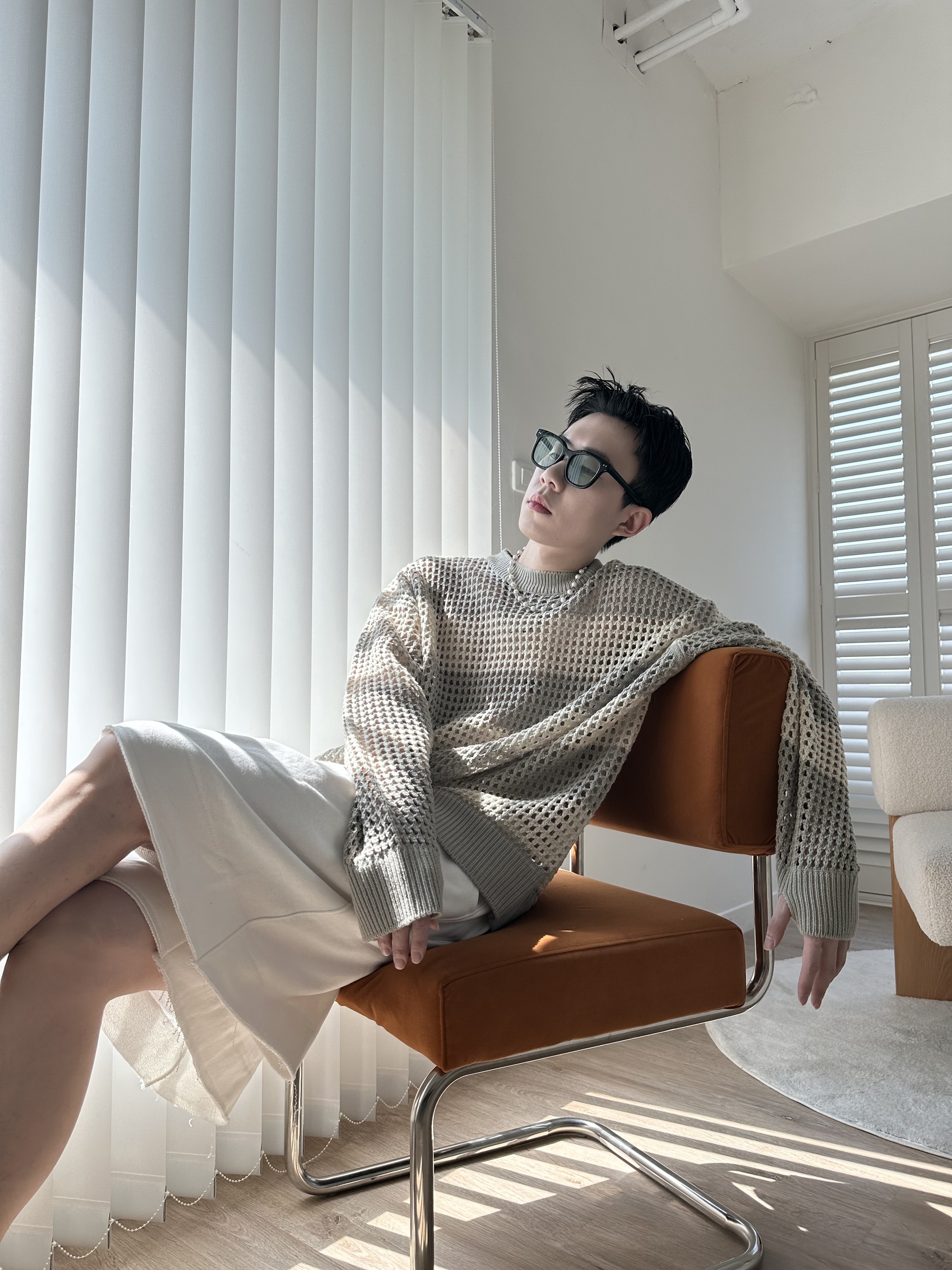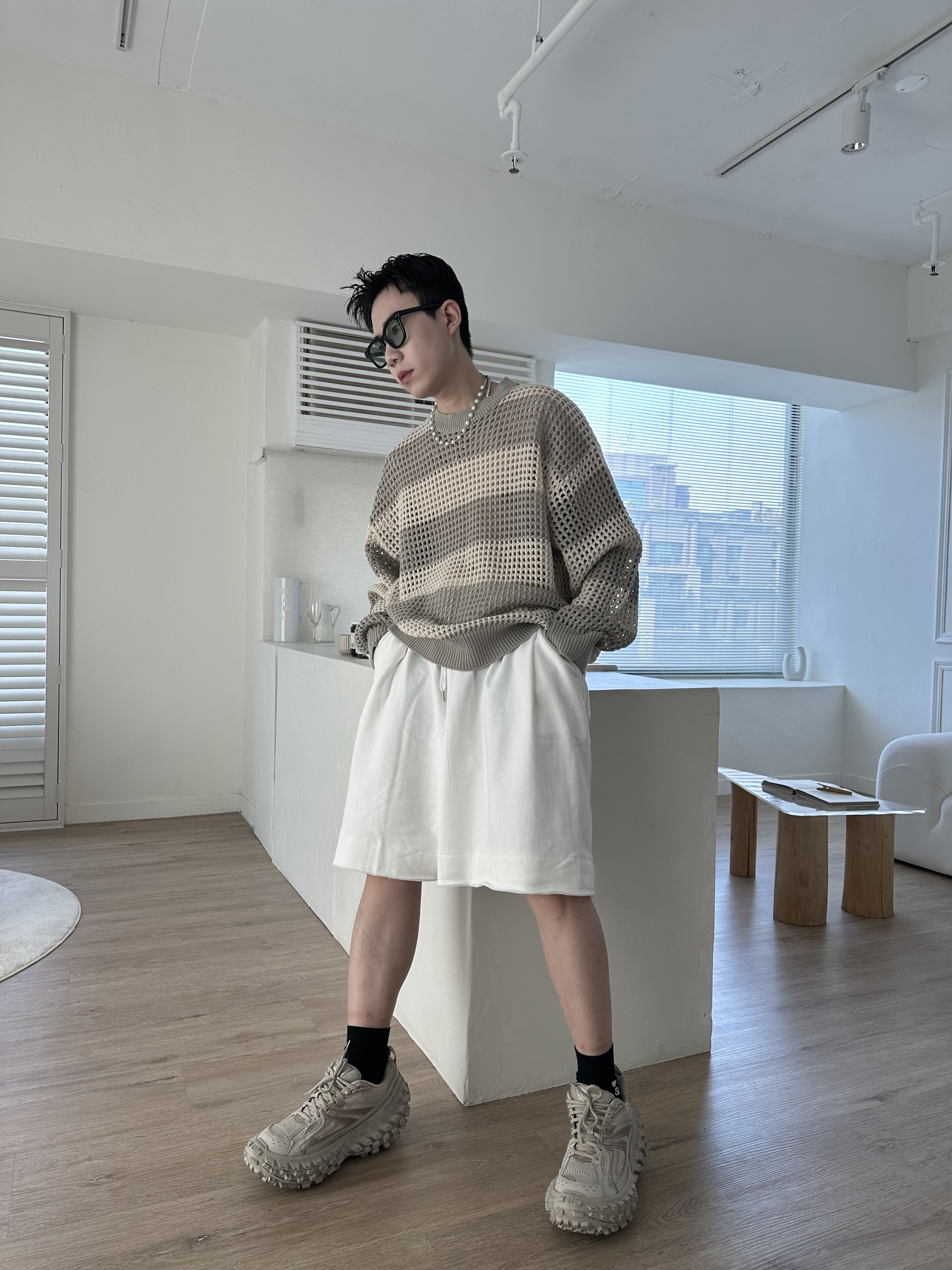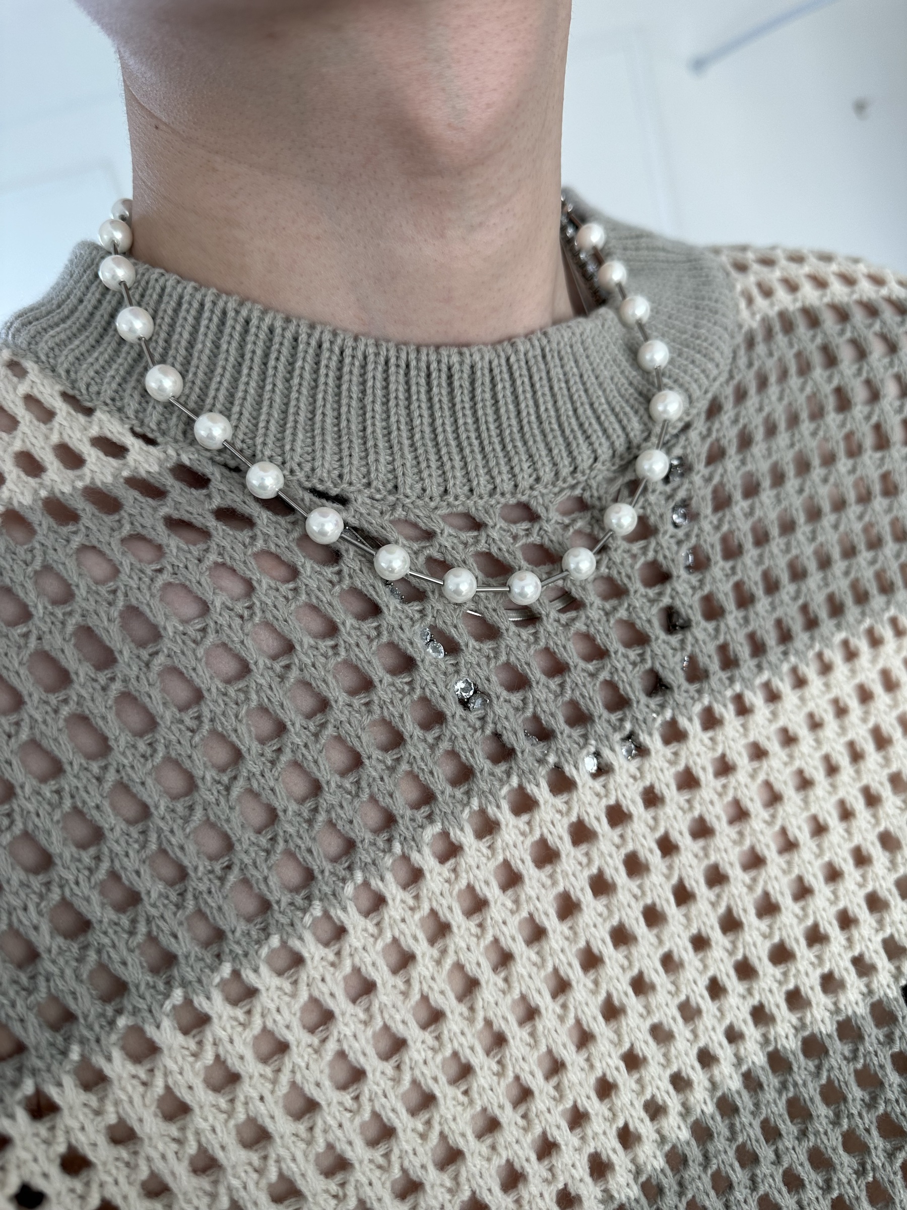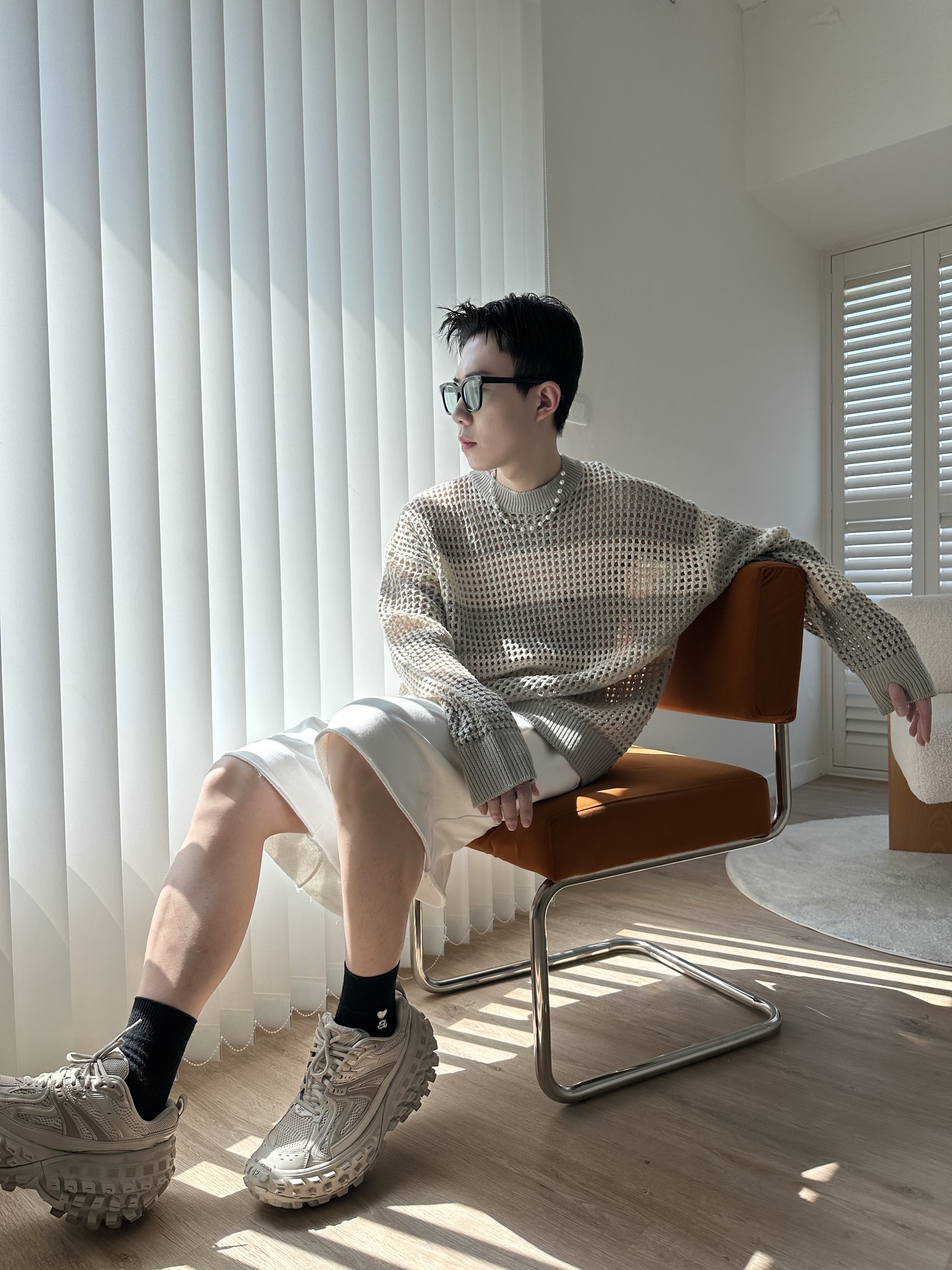 欠包色橫條洞洞透視上衣 – 田兄BroTin