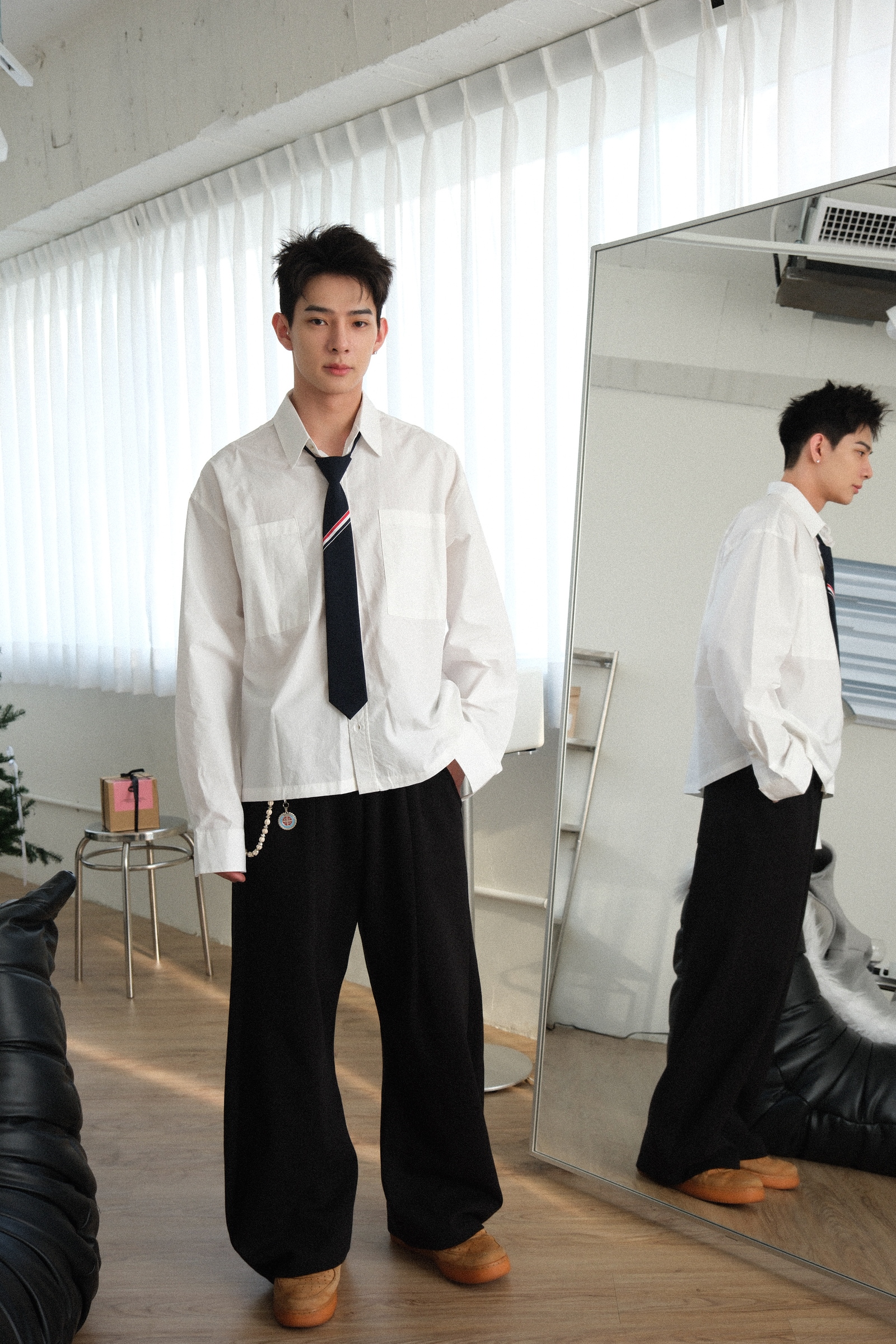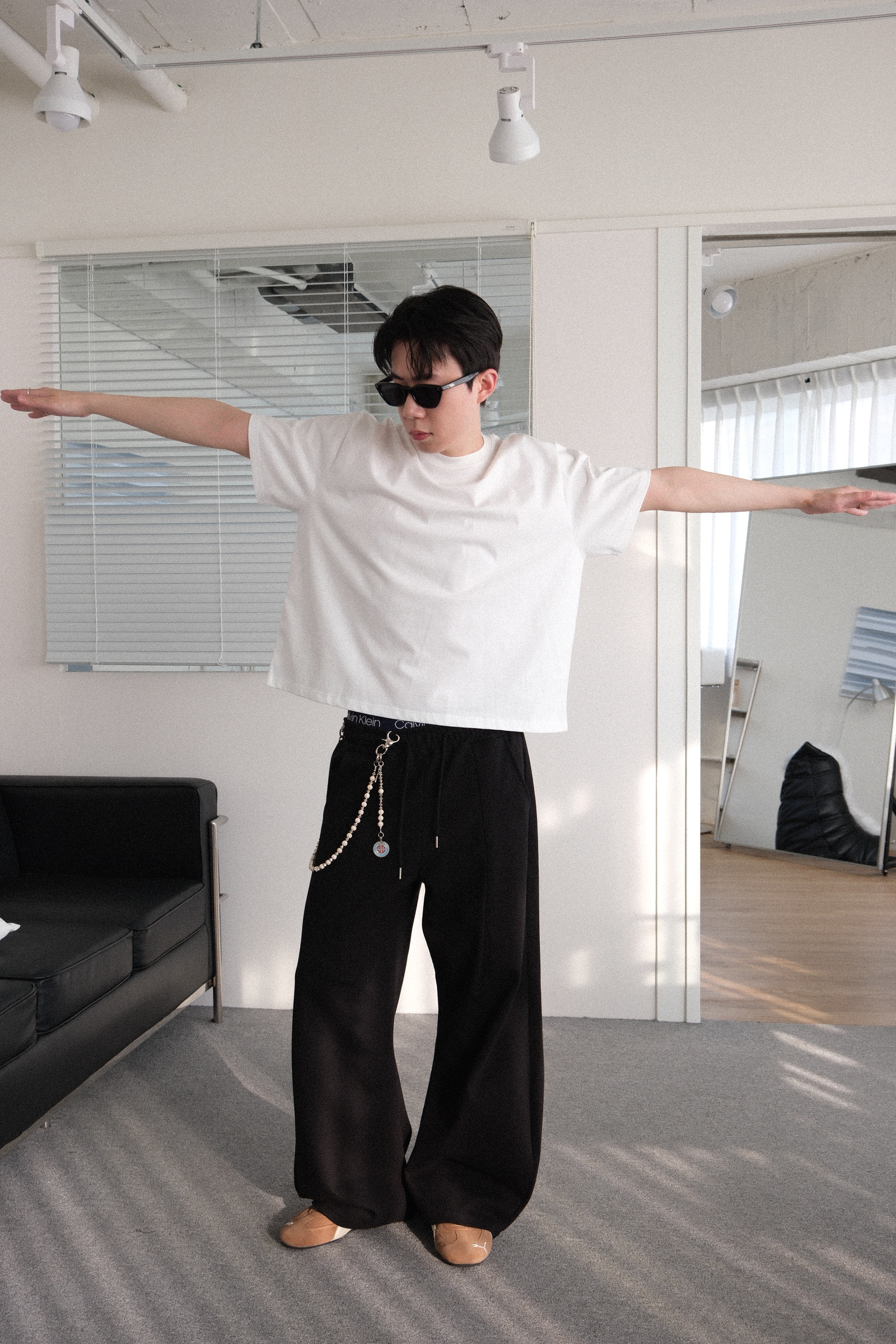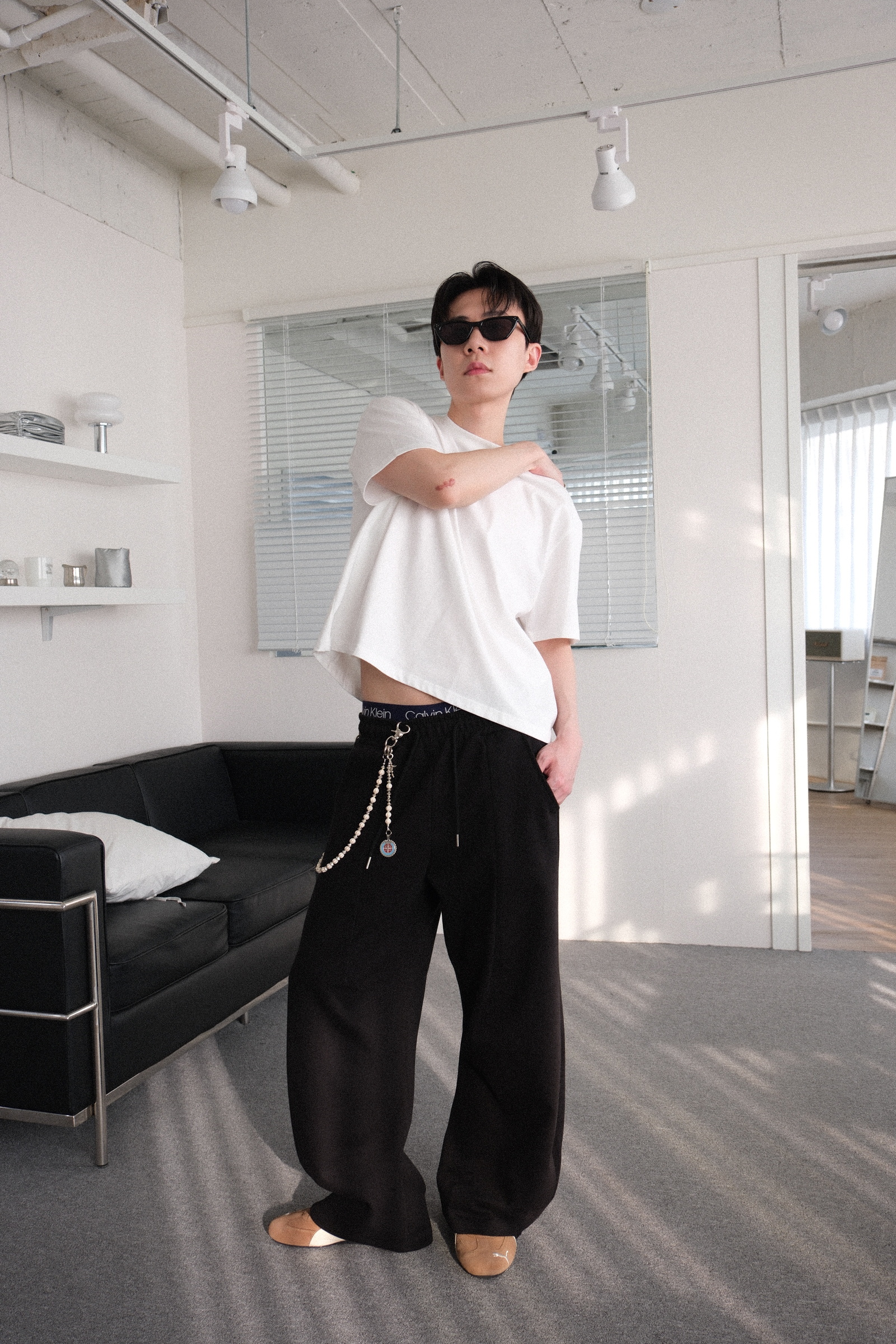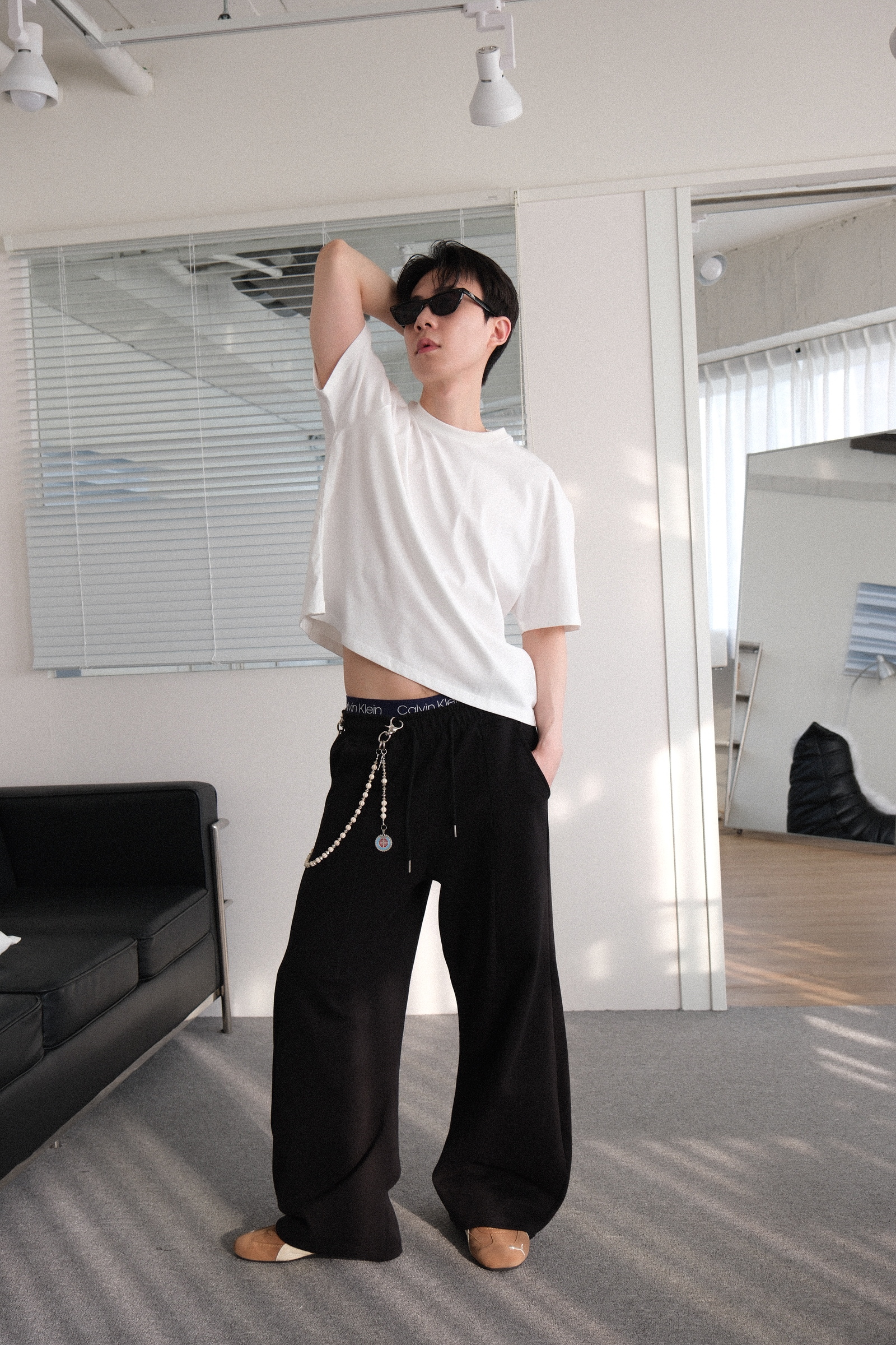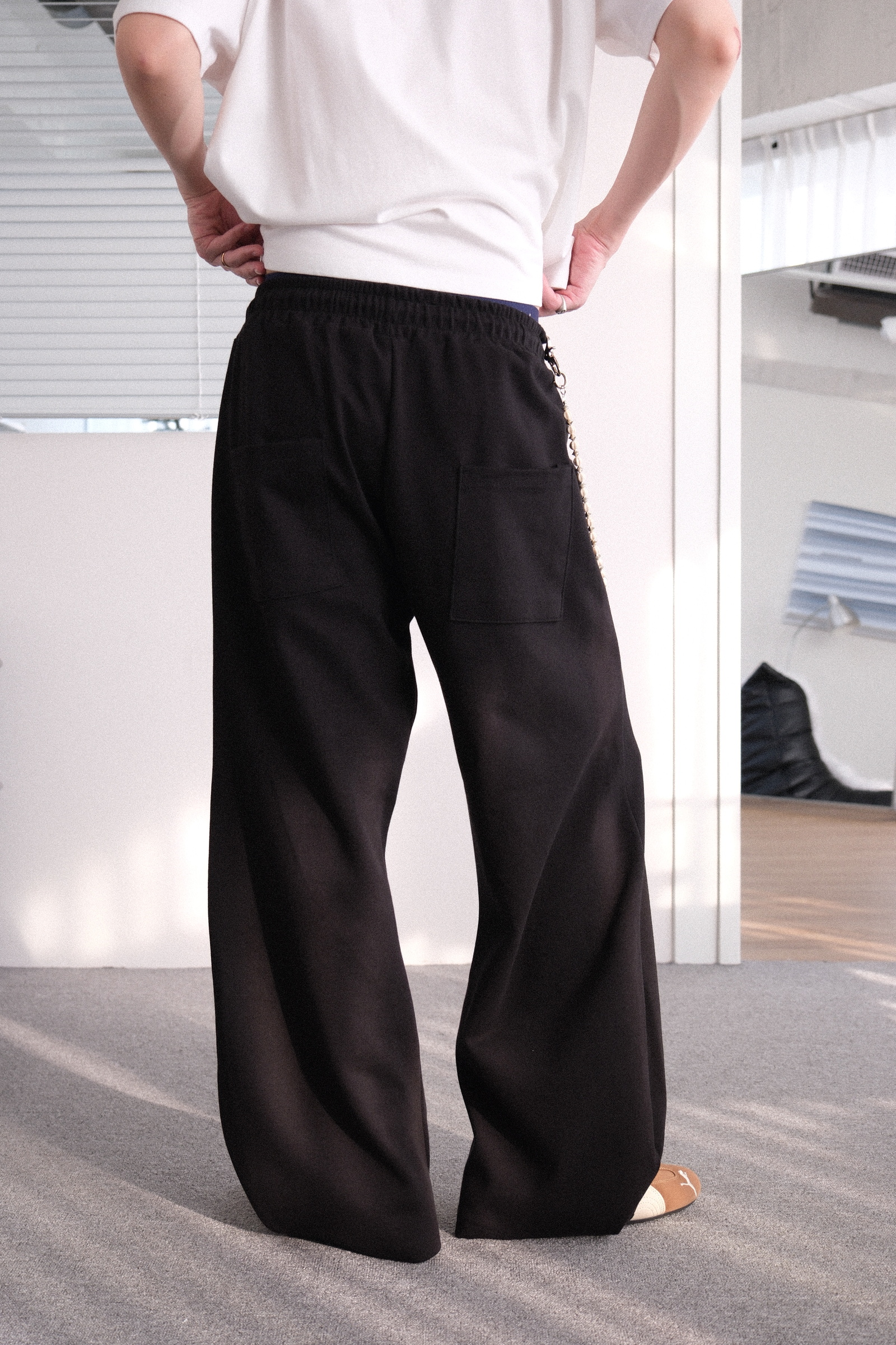 或者想搭配平底鞋,沒有厚度的鞋子,就能穿高一點,不讓褲子太拖地